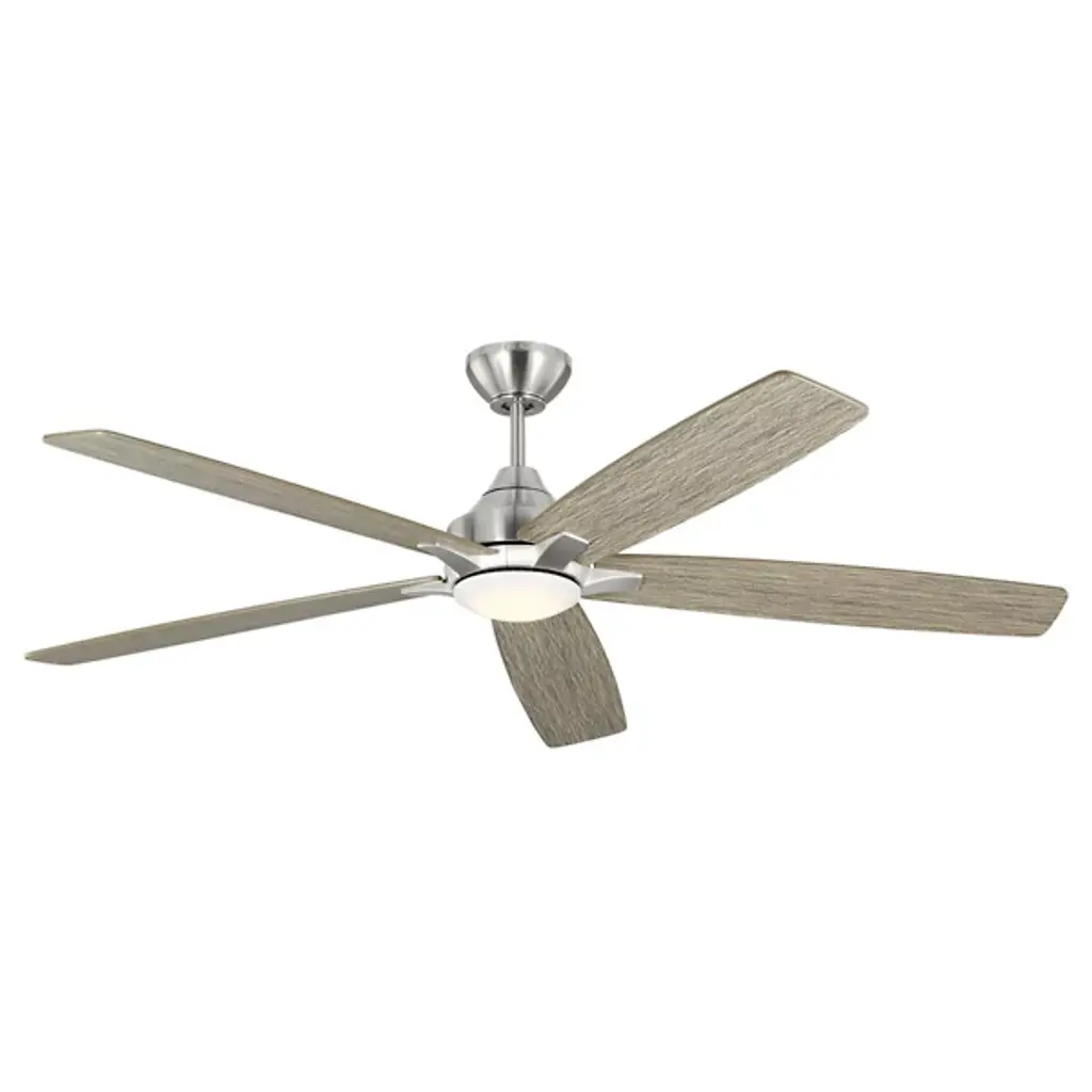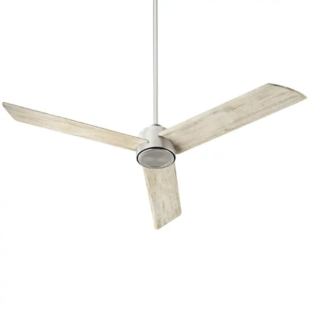Enhance your place of solace with the soothing air of the Temple LED Ceiling Fan from Oxygen Lighting. Fitting of its name, this fan presents understated modern visuals to keep the eyes relaxed at all times. The charming cone-shaped housing packs in a powerful DC motor and an LED system. The LEDs turn on and pass their light through a diffuser to provide a clean ambient glow. A group of blades surrounding the cone housing spin across six separate speeds with a reversible functionality. To adjust between the speeds and turn on the light, the fan comes equipped with a neat wall control.
