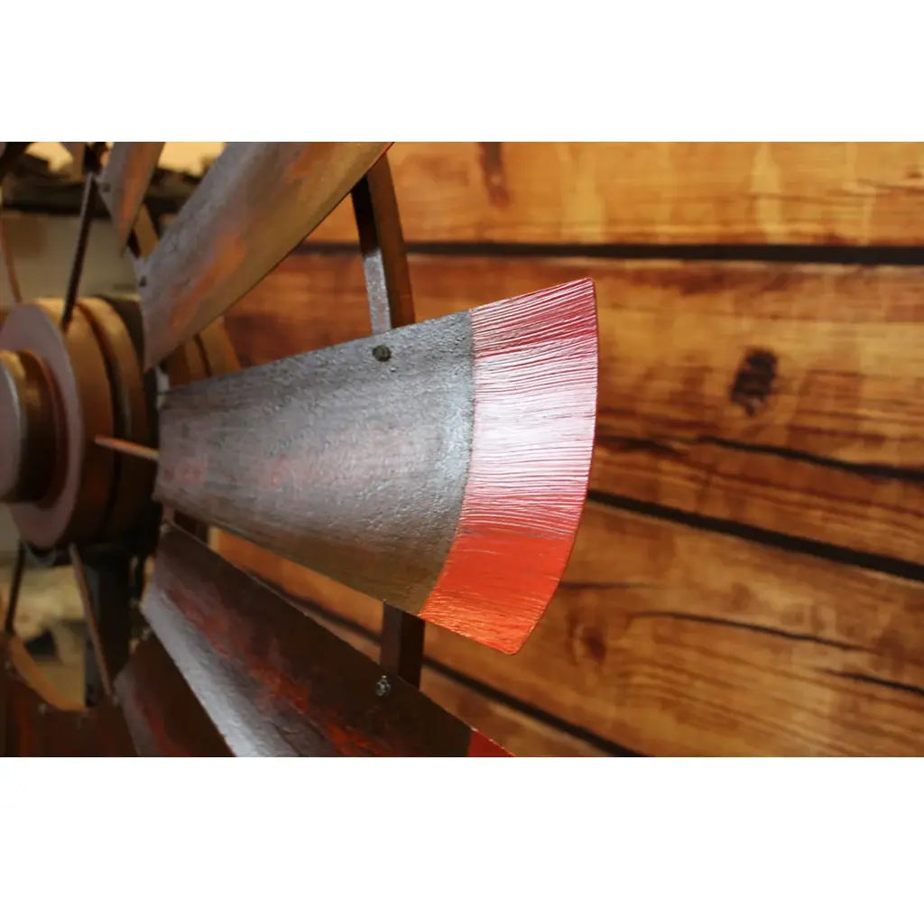 Cowboy Channel Windmill Ceiling Fan | The Patriot- The Cowboy Channel is the perfect blend of rust. Crafted from quality materials, this fan is built to last, while its nontraditional styling will stand out in any setting! Forged from the strength of Cowboys, this finish begins with the look and feel of a rusty, old windmill. The Rustic Red tips add a flare of nostalgia; you can practically feel the texture of a classic old red barn. The rich, rusted blades with red tips bring the soul of the farming lifestyle indoors with this exquisite fan design. How could you go wrong with this vivacious rusted and rustic red fan finish?Our windmill fans are hand-crafted, American-made, and truly one of a kind. We are a Texas family-owned and operated business. Each fan is constructed of durable steel and lightweight aluminum, allowing for stress-free Installation and perfect for interior or exterior placements. Our windmill ceiling fans work well in many settings.Easy Installation - standard ceiling supports and electricalEach fan is unique and one of a kindHand-crafted and American madeEighteen Blades for optimal balance (14 blades on the 46")Available in 46", 52", 60", 66", 72" diameter sizingEfficient motor integration designNone or minimal assembly requiredConstructed only of quality steel and aluminum. Absolutely no molded plastic and particle board!3-speed, reversible, quiet, gearless AC motorCFM rating from 3000-4500Free consultation and adviceAccessory Kit includes everything needed for InstallationFamily-owned and operatedFan weight is approximately 40 to 50lbs depending on the size and finishOutdoor damp ratedIt can be used on a flat or sloped ceilingWe are the only Windmill Ceiling Fan Company that provides unique aluminum lightweight, 18-blade design and custom finishes.Note: Our fans are not mass-produced. Each of our windmill ceiling fans are hand-crafted, they might have slight variances, and the rings may not be perfectly round or flat, very similar to an actual windmill in a pasture.Every fan is built, assembled, tested, and balanced with your blades and down rod. We remove the blades for shipping (smaller fan blades can remain attached upon request). We number each blade and number the frame so you will get the same balanced effect when reattached. Our fans are shipped all over the US and internationally in custom packaging (70" x70" x20").