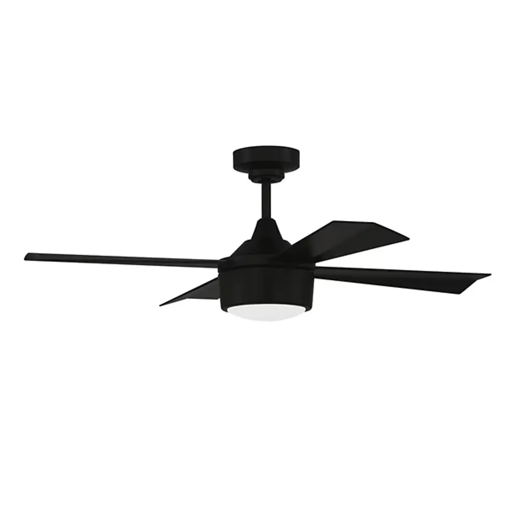 The Theo Indoor/Outdoor LED Ceiling Fan from Craftmade Fans is made with premium aluminum and steel materials. It boasts durable construction suitable for both indoor and outdoor use, offering lasting performance. Featuring 4 blades and a contemporary aesthetic, this fan adds a touch of edginess to your space. Equipped with reversible functionality and 3 adjustable speeds, your ceiling fan allows you to customize airflow. It has a convenient switch on the housing for hassle-free operation. Illuminate your space with diffused, integrated LED light emitted by the white glass shade.