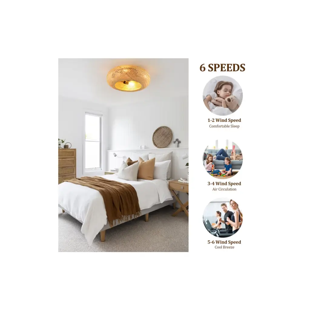 Tobili 19" Rattan Ceiling Fan, Dimmable,7 Blades