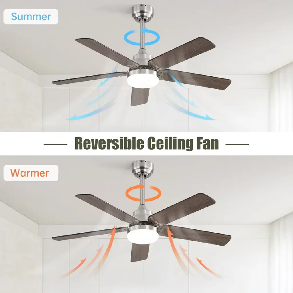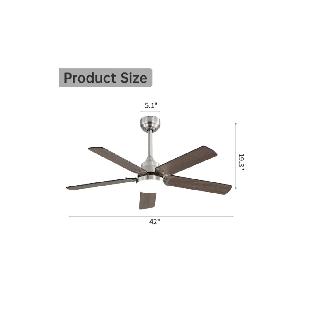 Tobili 42 Inch Ceiling Fan 5 Blades Noiseless Reversible Dc Motor With Led Light