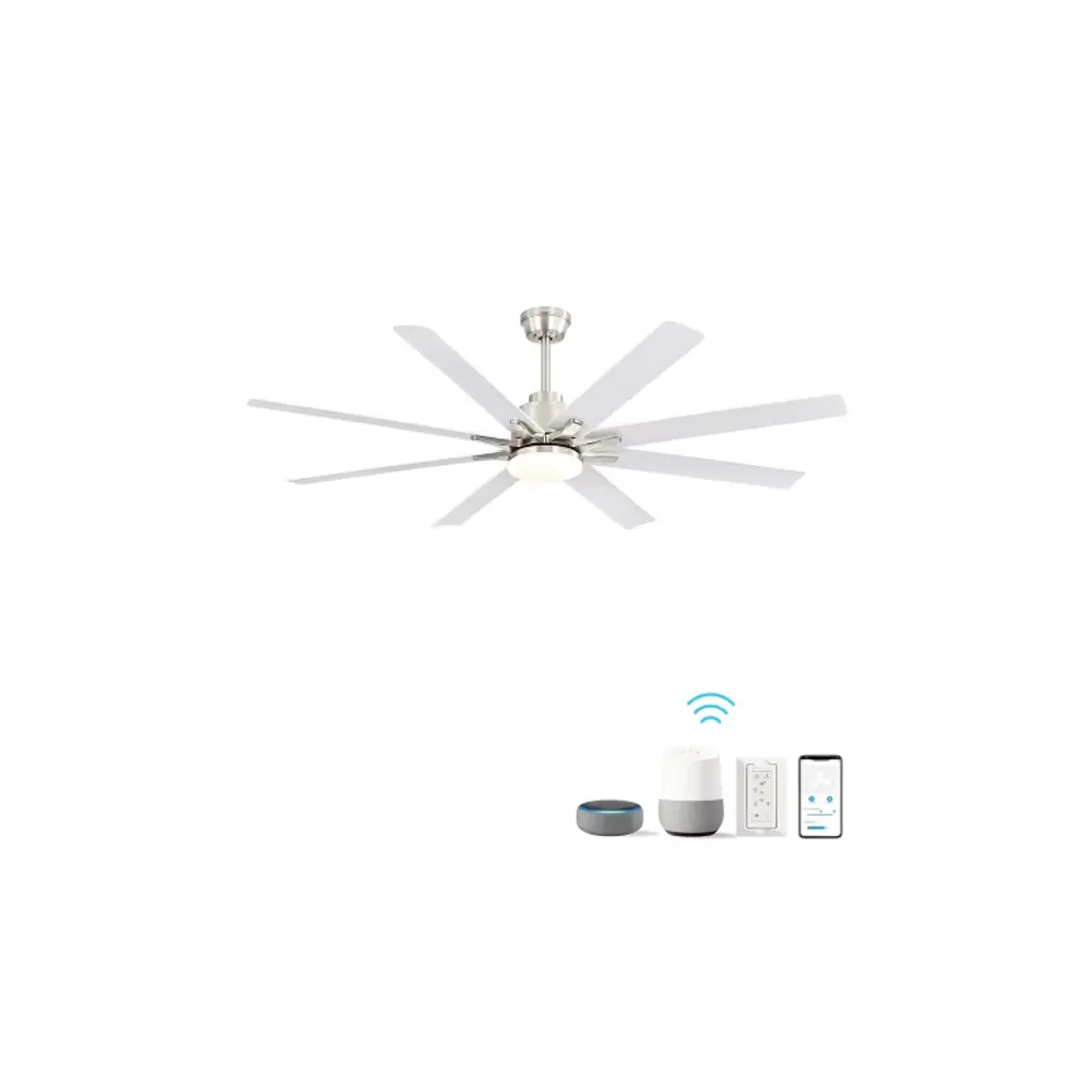 Modern ABS Ceiling Fan The 66-inch modern ceiling fan is simply and beautifully designed to complement any room decor, perfect for those who want to add a touch of sophistication and elegance to their home or outdoor space, suitable for patio, gazebo, living room, bedroom various places. Also features high-quality ABS leaves that are both durable and long-lasting.Downward rotation is cool in summer, and reverse rotation in winter makes airflow upward to purify the air. High Quality Ceiling Fan This ceiling fan is made of high-quality ABS material and stainless steel, which is strong and durable. Stylish in appearance, it can fit with your different decorative styles. 66 Inch Ceiling Fan See the product details page for dimensional drawings. Perfect for room sizes up to 25 m2, Restaurant, bedroom, living room, office, loft, balcony, modern living.
