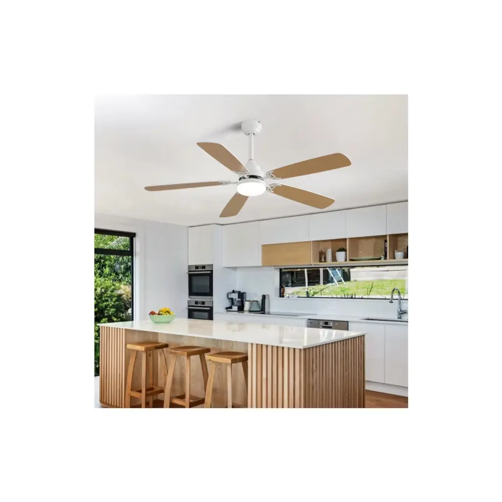 52 Inch Ceiling Fan With Light Color: White Blades Size: 52" Light Source: LED 18W Special Feature: Timer Certification: ETL Downrod: 5"/10"/24" Room Type: Farmhouse, Restaurant, Rustic, Garage, Living Room, Bedroom, Home Office, Kids Room, Balcony, Cabinet, Garage, Garden, Home, Shop, Dining Room High Quality Ceiling Fan . With its durable and modern design, this 52-inch ceiling fan is perfect for medium to larger-sized rooms ranging from 160-400 sq.ft. Reversible Ceiling Fan Reversible DC Motor Quiet Energy saving, Function Includes Forward and Reverse for Summer and Winter 2 Airflow Modes, Cooling In Summer and Keeping Warm in Winter. Modern 52 Inch Ceiling Fan This modern ceiling fan with light, each piece is carefully designed and crafted with great quality MDF. It gives the indoor/outdoor decor a touch of luxury and refinement.