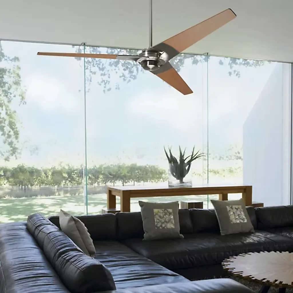 Crank it up with the Modern Fan Company Torsion Ceiling Fan. Sporting a uniquely light-industrial design, this ceiling fan's blades split as they join its body, almost as if they're huge wrenches twisting on the head of an enormous bolt. Top it off with a large selection of finish and control options.