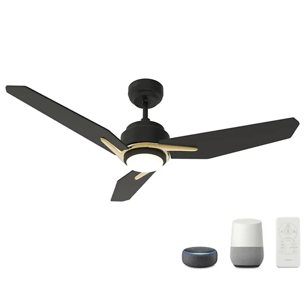 A stylish silhouette and contemporary composition set the Tracer LED Smart Ceiling fan apart from the standard renditions of this practical item. It features suitability for outdoor and indoor use, as well as reversible fan blades, integrated and energy-efficient LED with warm and cool light settings, and compatibility with Wi-Fi apps and Voice control via Google Assistant, Amazon Alexa, and Siri Shortcuts. The coupling cover and canopy conceal the exposed hardware, and it’s an easy installation with step-by-step instructions included.