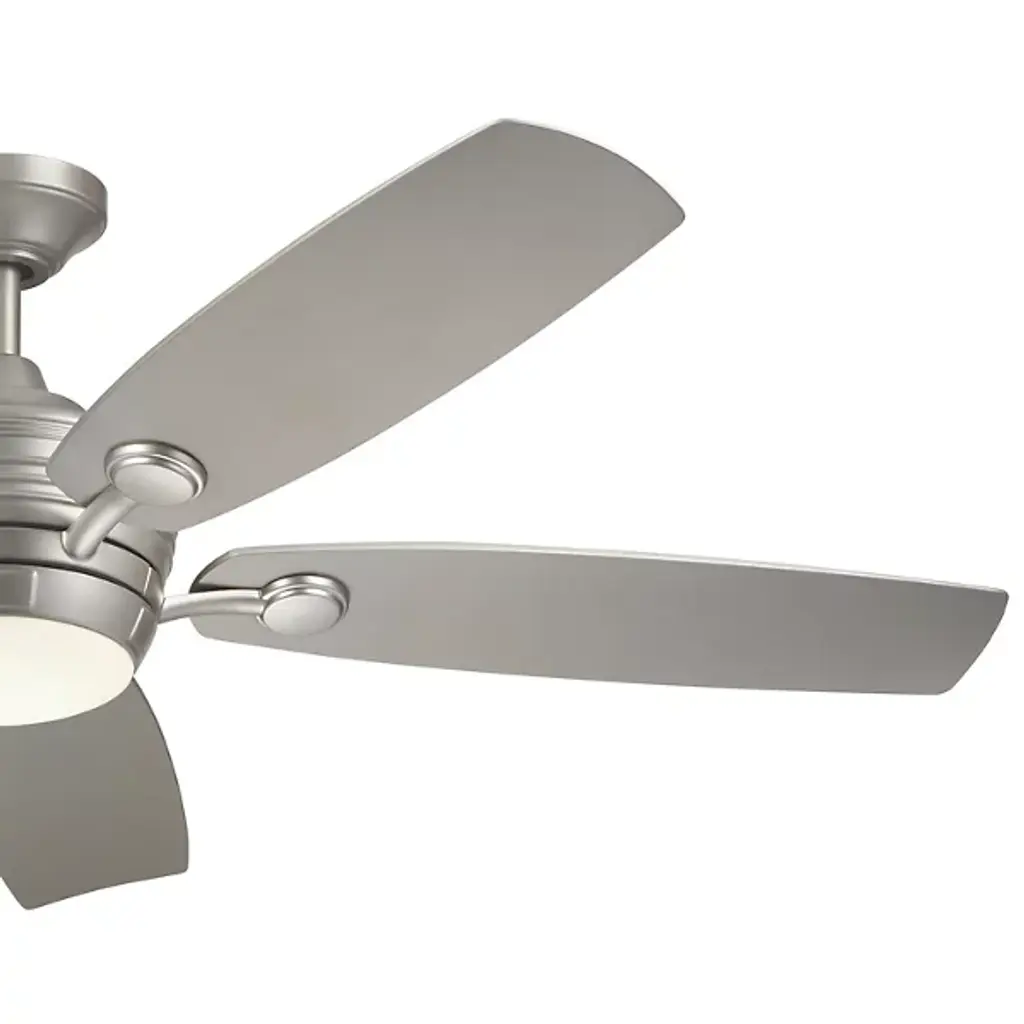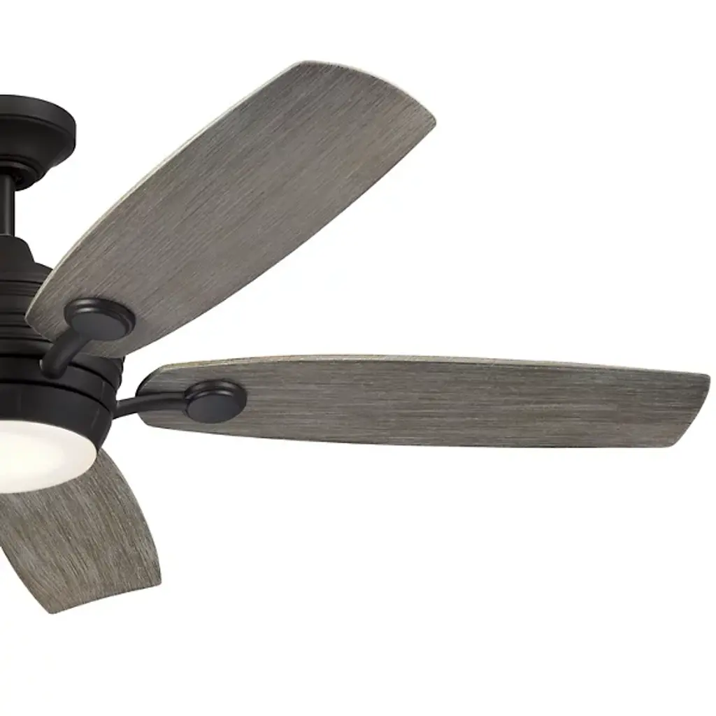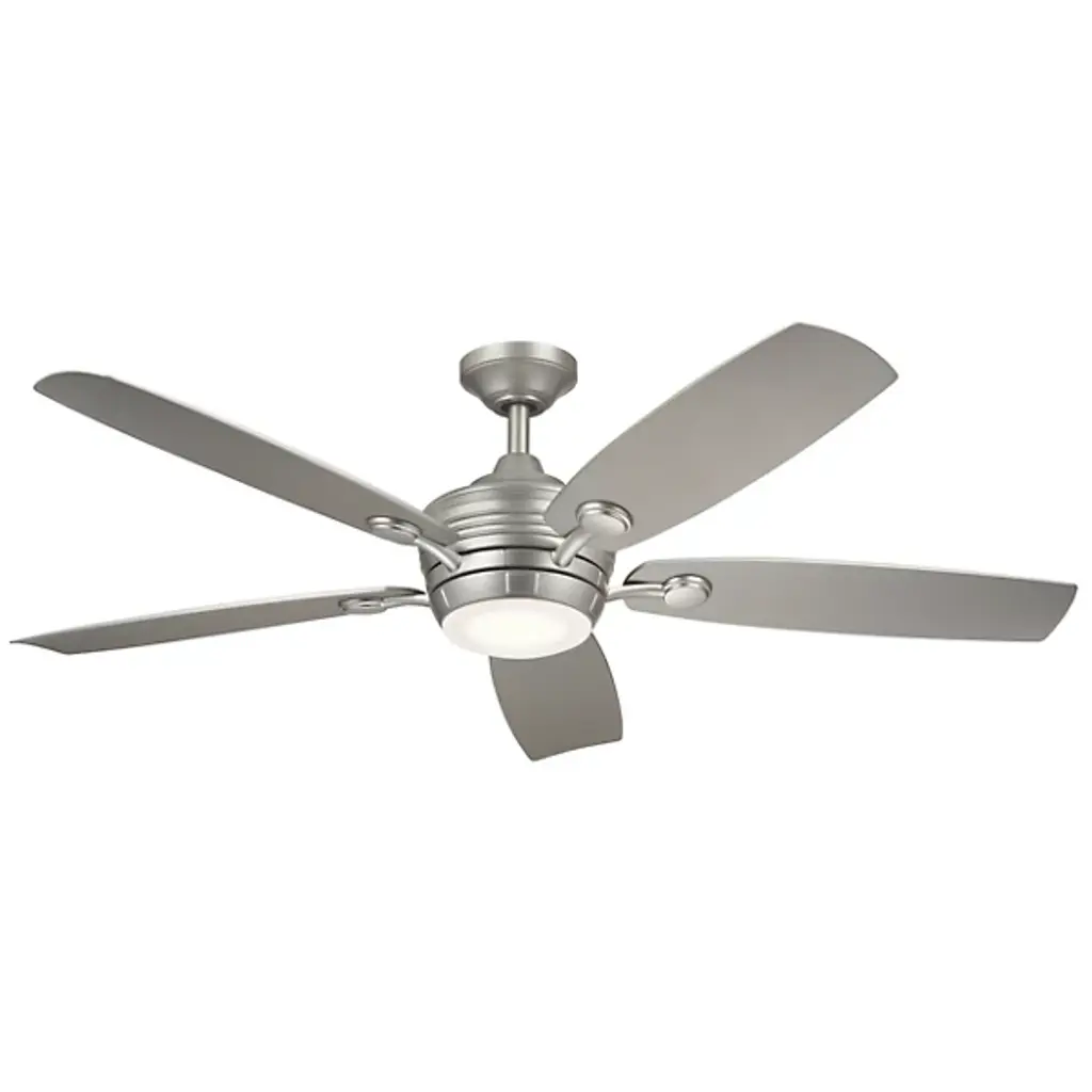 The Tranquil Outdoor LED Ceiling Fan by Kichler easily cools your outdoor living space. Beautiful oblong blades of steel neatly surround an AC motor’s encasement. This motor powers the fan’s blades, allowing the air to circulate effortlessly throughout your outside seating area. This fixture boasts reversible blades which function at 3 different speeds for a fully customized leisure experience. When it gets dark outside, rest assured that your gathering may commence, fully illuminated by the fan’s centrally placed LED.