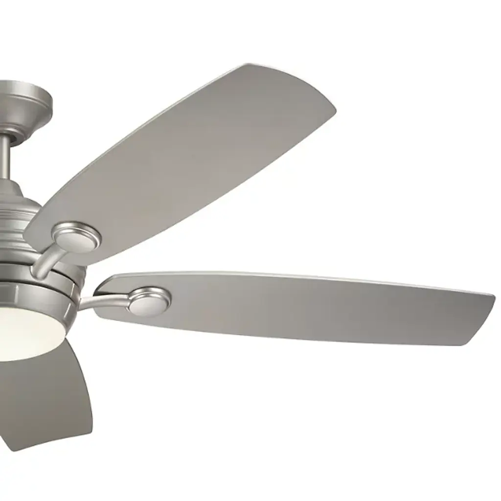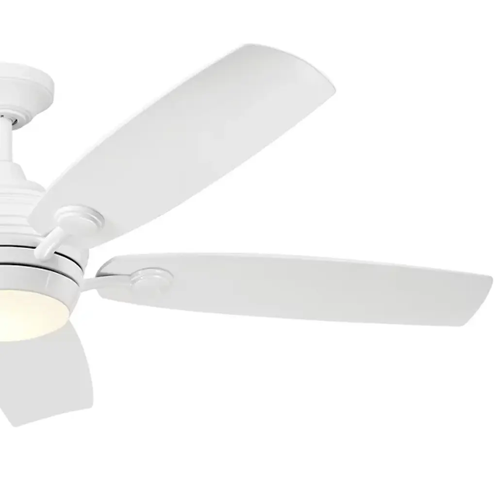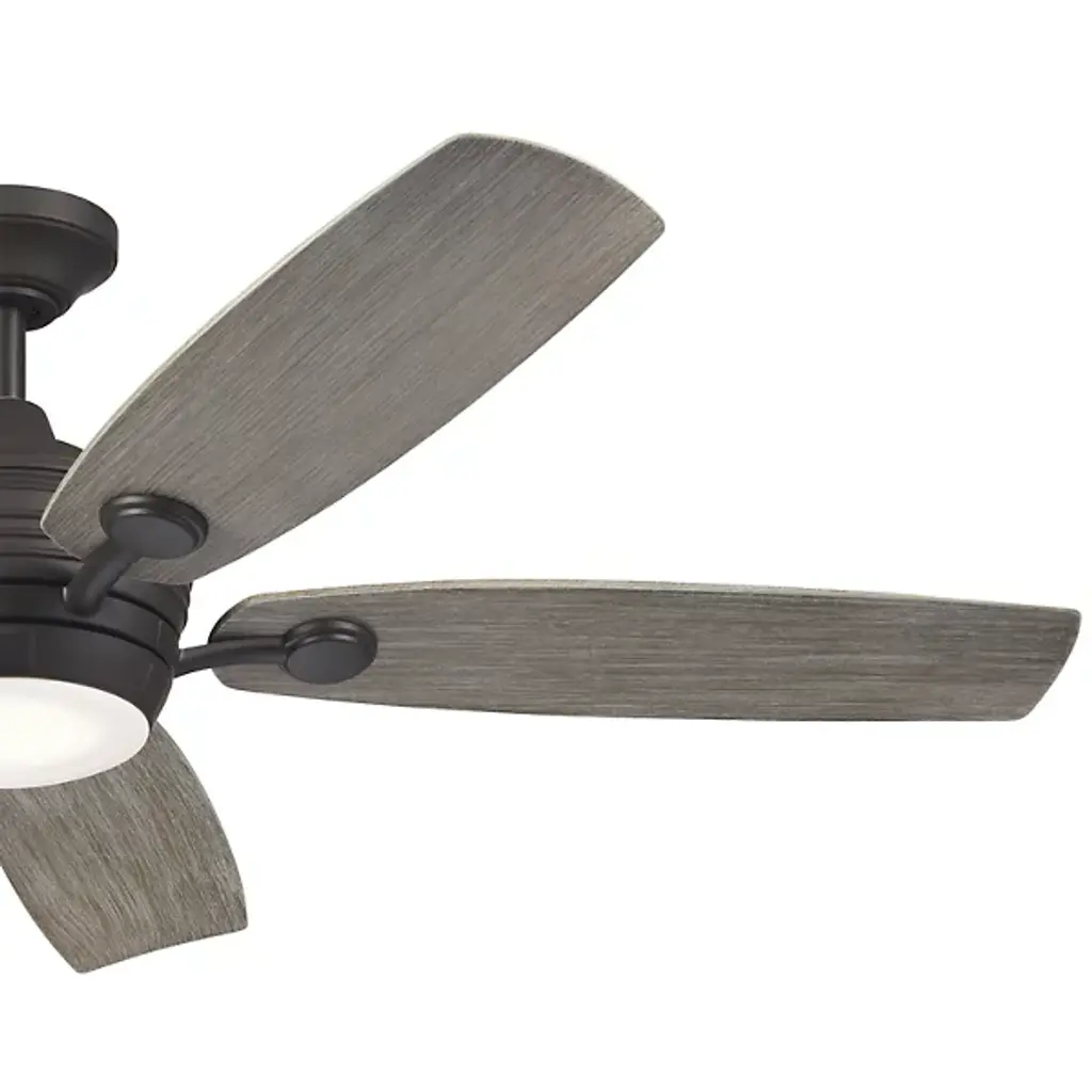 The Tranquil Outdoor LED Ceiling Fan by Kichler easily cools your outdoor living space. Beautiful oblong blades of steel neatly surround an AC motor’s encasement. This motor powers the fan’s blades, allowing the air to circulate effortlessly throughout your outside seating area. This fixture boasts reversible blades which function at 3 different speeds for a fully customized leisure experience. When it gets dark outside, rest assured that your gathering may commence, fully illuminated by the fan’s centrally placed LED.