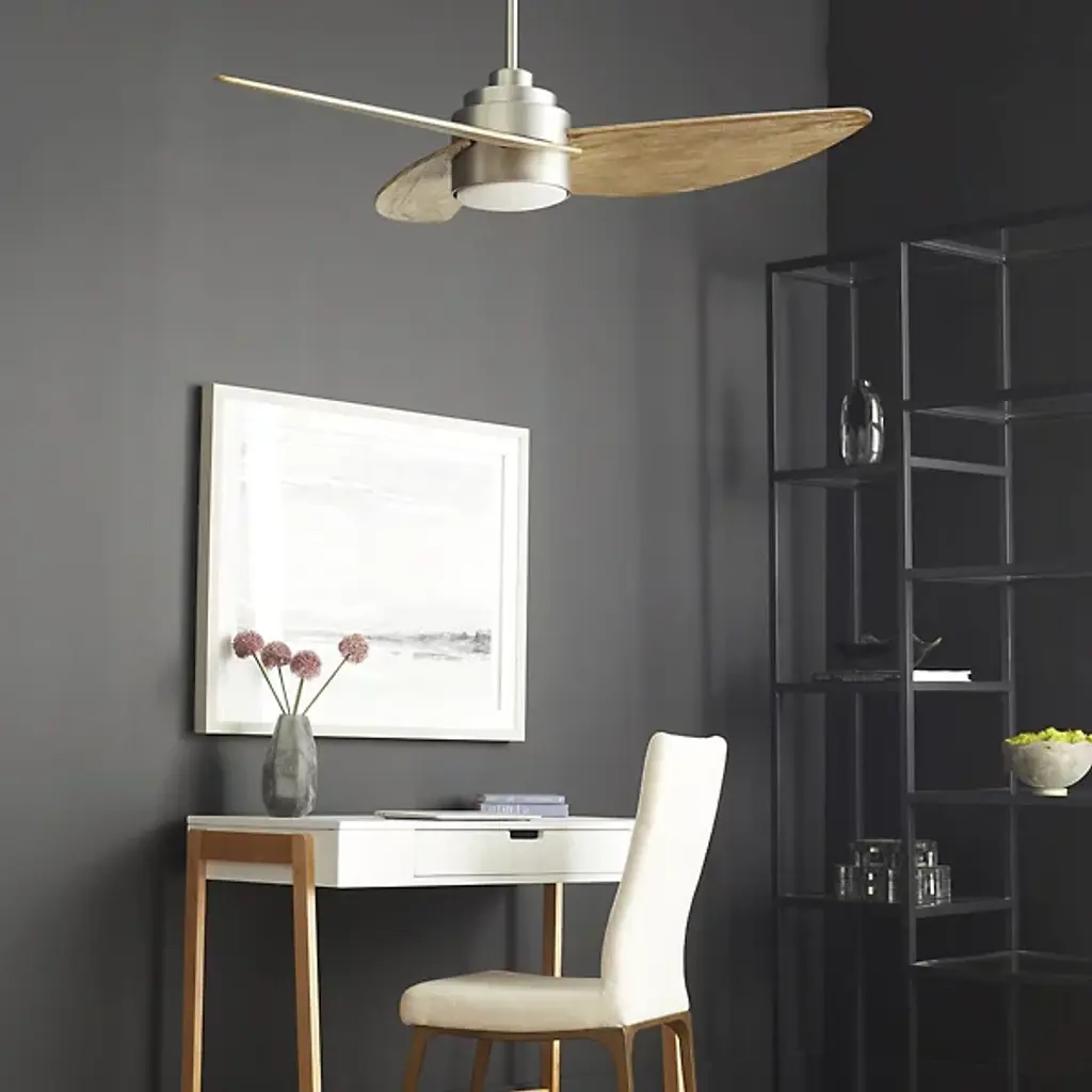 The Trinity Ceiling Fan from Quorum International brings visual and physical comfort as a modern form sporting a nature-inspired finish. This finish shows on the blades as a textured one with rustic tones. The motor frame sports a contrasting smooth finish. This contemporary 3 blade design features graceful curves that provide a breezy airflow at 6 different speeds in forward and reverse.