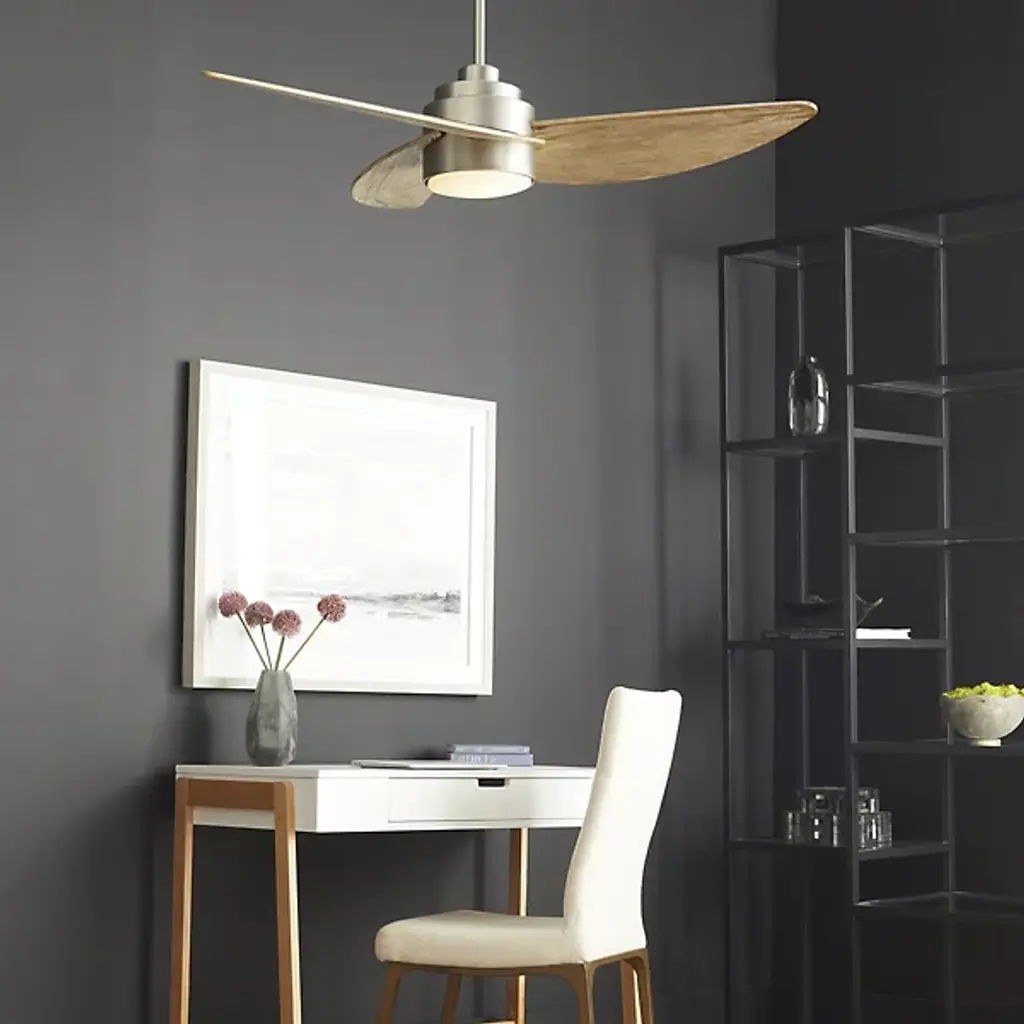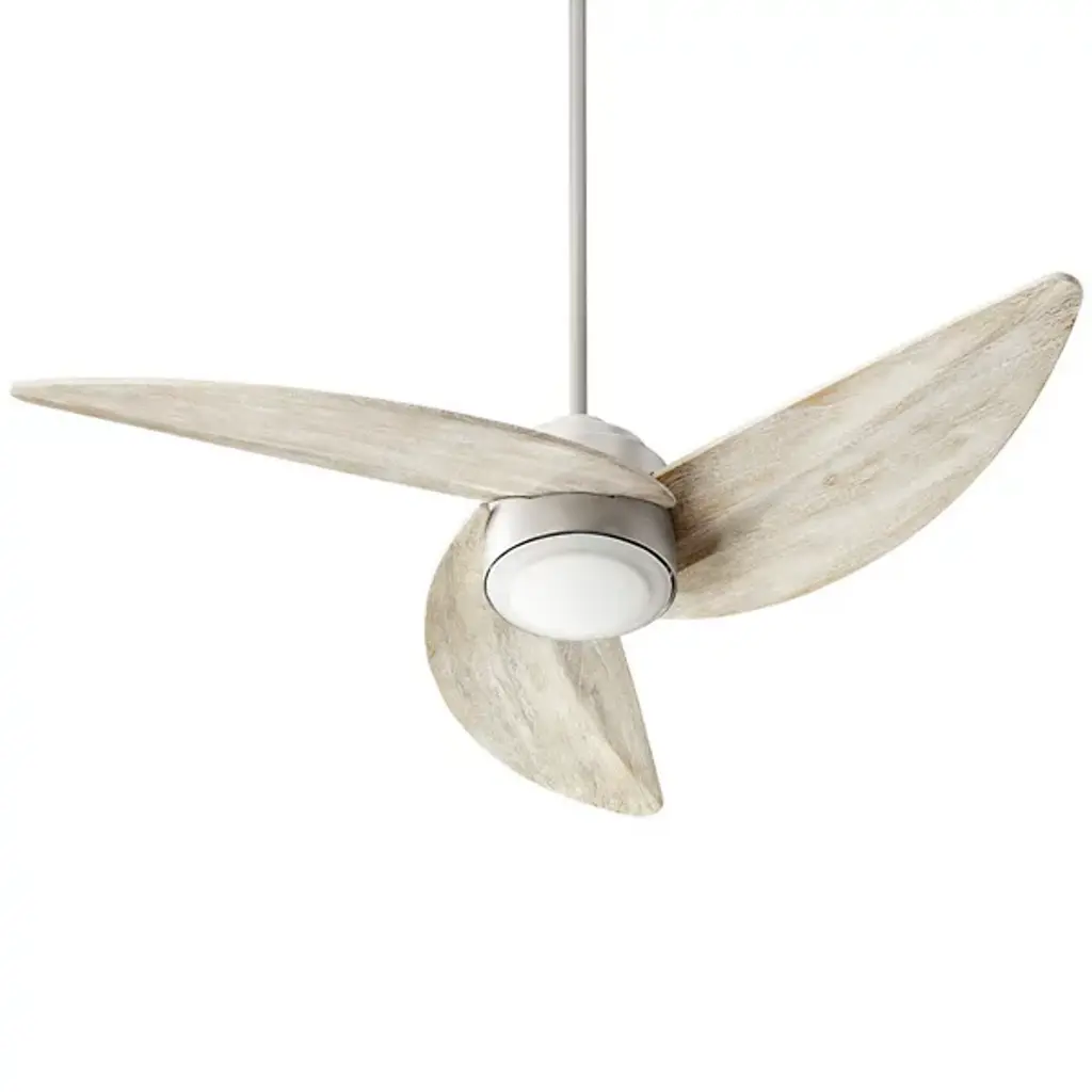The Trinity Ceiling Fan from Quorum International brings visual and physical comfort as a modern form sporting a nature-inspired finish. This finish shows on the blades as a textured one with rustic tones. The motor frame sports a contrasting smooth finish. This contemporary 3 blade design features graceful curves that provide a breezy airflow at 6 different speeds in forward and reverse.