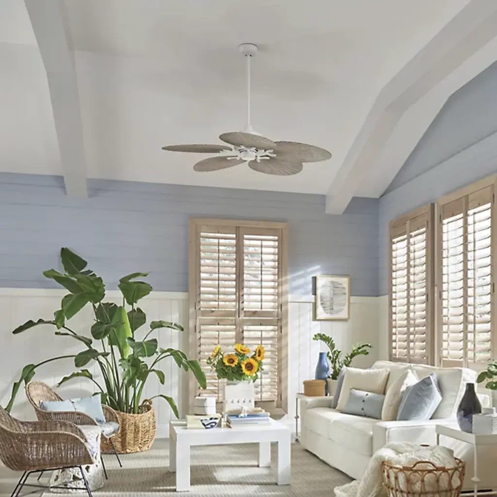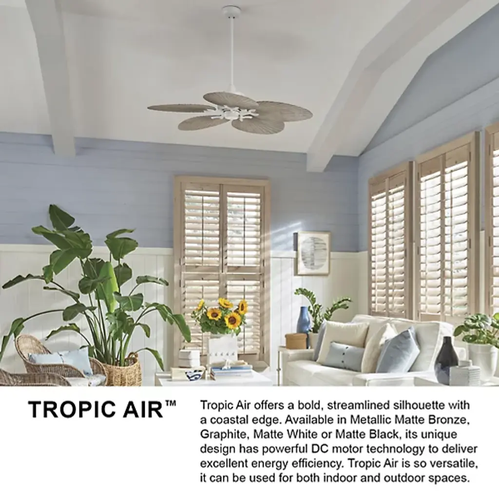 Add a unique touch to the rooms of your home with the Tropic Air Ceiling Fan from Hinkley Lighting. Mounting to the ceiling, this piece features a traditional ceiling fan body made of smooth metal. The set of five blades placed around it stand out in the space with an eye-catching design made of composite material. Each blade is wide and distinct, creating the perfect environment in the room below as they spin throughout the year.