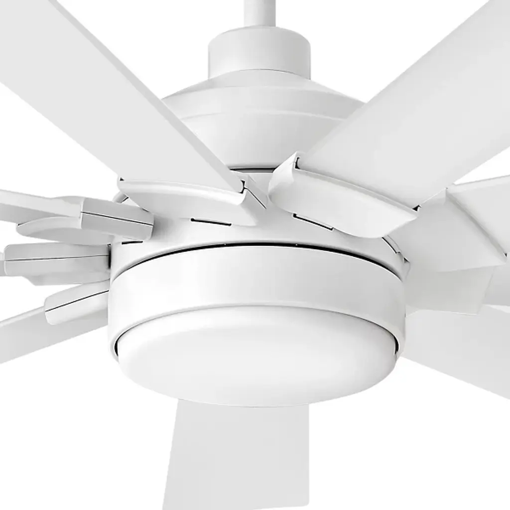 Bring a bold breeze to large indoor or covered outdoor spaces with the Turbine LED Ceiling Fan from Hinkley Lighting. Retained by a small round canopy, a downrod drops to a wide-reaching array of nine slender, composite blades set within a stepped, circular housing. A quiet, efficient DC motor controlled by an included HIRO control offers six speeds of reversible action, while the fan itself and the integrated LED are both wet-listed, adding a warm wash of even ambiance through an etched opal diffuser while providing standout service. Comes with Hinkley's HIRO smart fan control system allowing you to control your fan using a smartphone app or voice assistant like Amazon Alexa or Google Assistant.