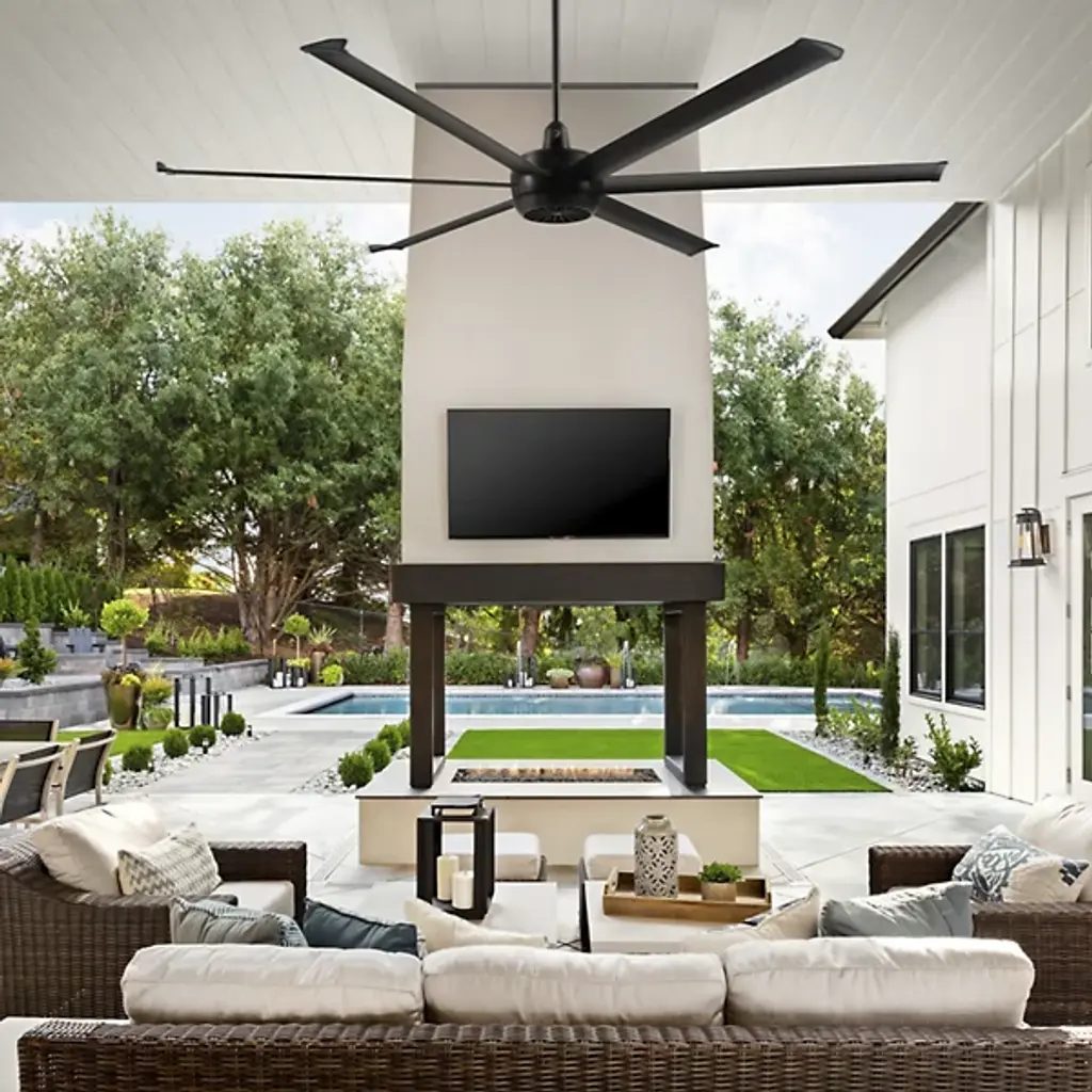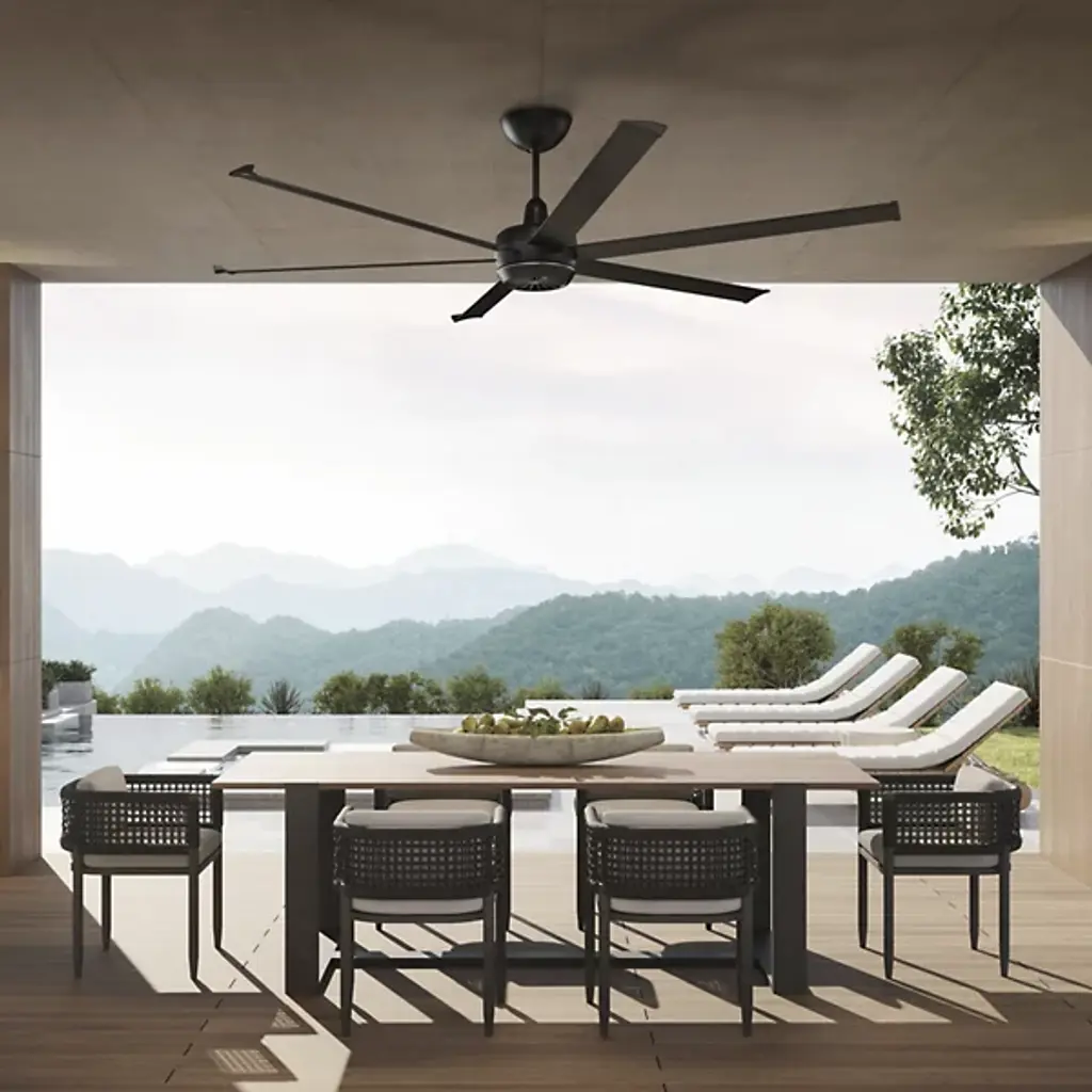 The Turbo 6 Outdoor Ceiling Fan from Big Ass Fans sets a new standard in airflow performance, offering nearly double the airflow of typical outdoor fans. Designed for extreme heat, the Turbo6 features a unique Kick Ass™ mode that delivers a powerful burst of cooling air when you need it most. With this advanced airflow capability, the Turbo6 ensures optimal cooling, making it an ideal choice for hot days. A handheld remote can easily control The fan's performance, putting powerful cooling at your fingertips.