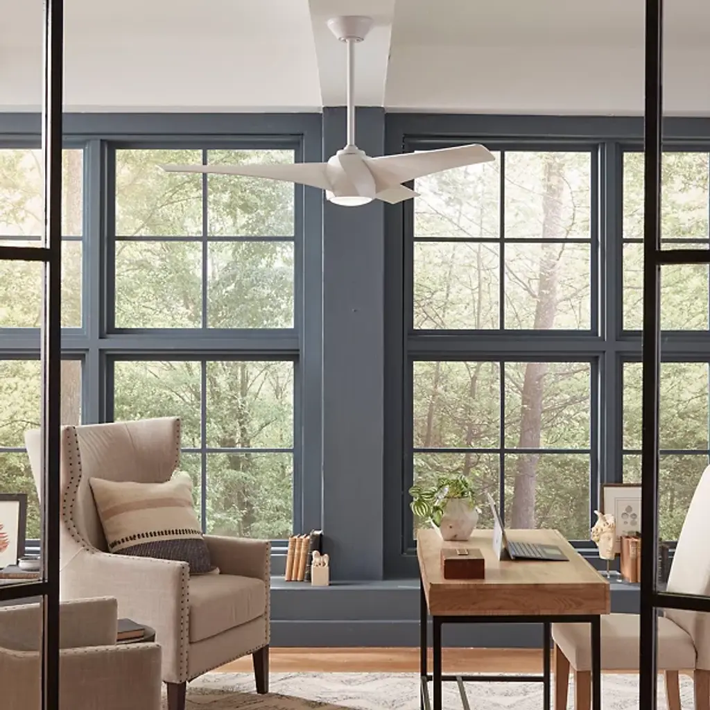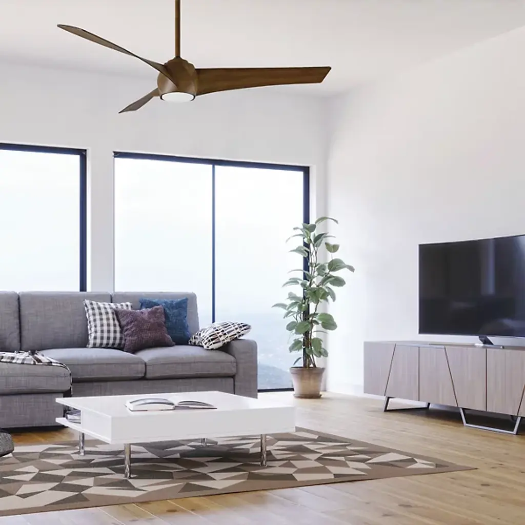 Introduce a comforting layer of air to the environment of your home with the Twirl Indoor/Outdoor LED Smart Ceiling Fan from Modern Forms. A sleek silhouette, this fan consists of three distinct, clean blades that come together, wrapping around a single central point. The base of this central point emits an even layer of light as the blades circulate the air. A Bluetooth remote is included, and with the Modern Forms app, you can control the speed of your fan remotely.