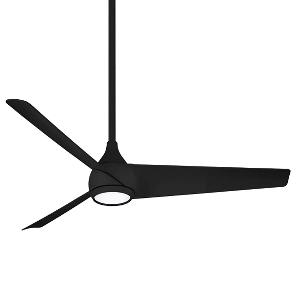 Bring a cool waft of air and broad-reaching illumination to interiors with the clean-surfaced, contemporary lines of the Twist LED Smart Ceiling Fan from Minka Aire Fans. A simple structure fashioned from smooth steel, it descends from a long, strong downrod to secure a flaring conical housing below. The housing holds both a quiet DC motor and three slim, curved blades pitched, while the fixture’s robust LED lamping shines out below them, adding an open wash of bright light below.