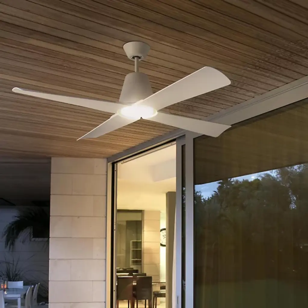 Designed by Jordi Busquets, the Faro Barcelona Typhoon Indoor/Outdoor Ceiling Fan is a simple, but effective 50” ceiling fan. Rated for indoor or outdoor applications, the Typhoon features a crisp White finish that covers its entirety and makes a clean contemporary addition to any space. A simple canister housing carries 4 flat edge blades and pushes over 6,400 cubic feet of air per minute. It also features anticorrosive treatment for wet locations and includes a handheld remote with purchase.