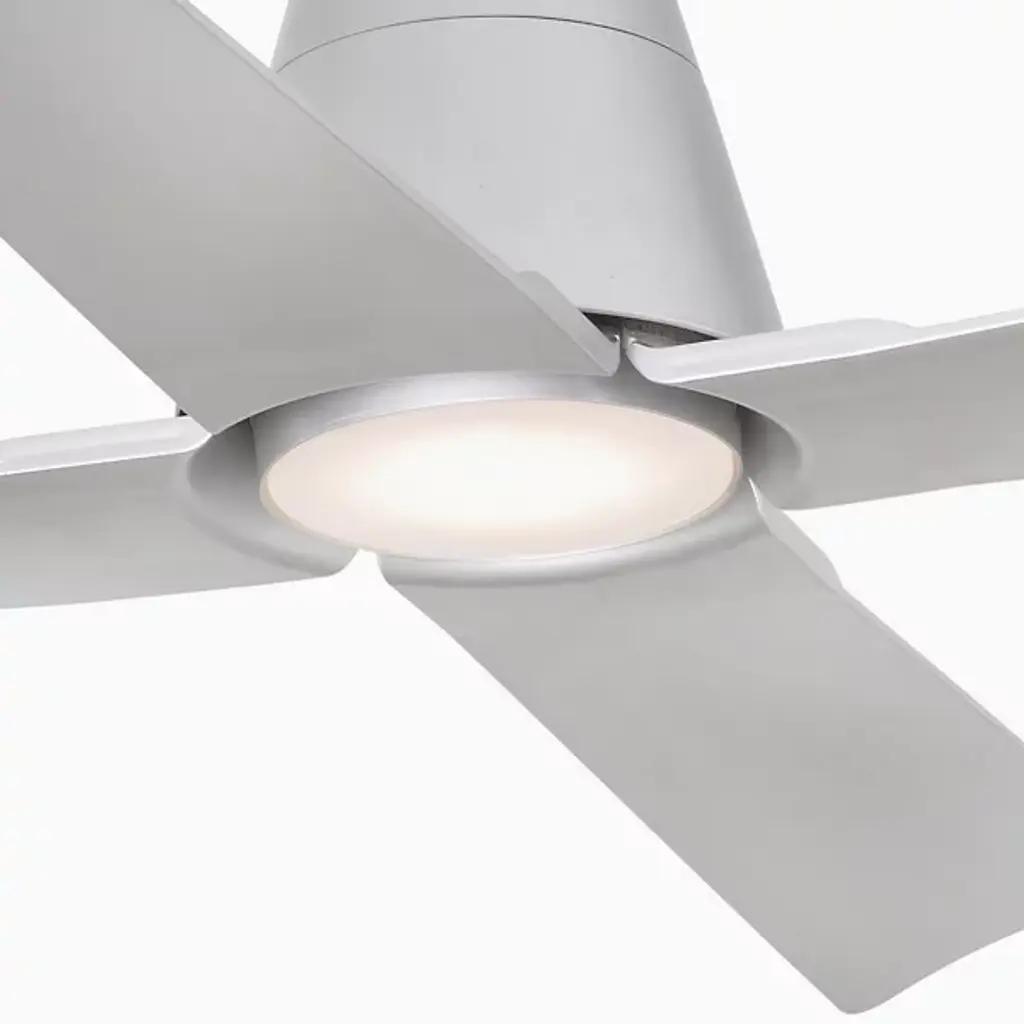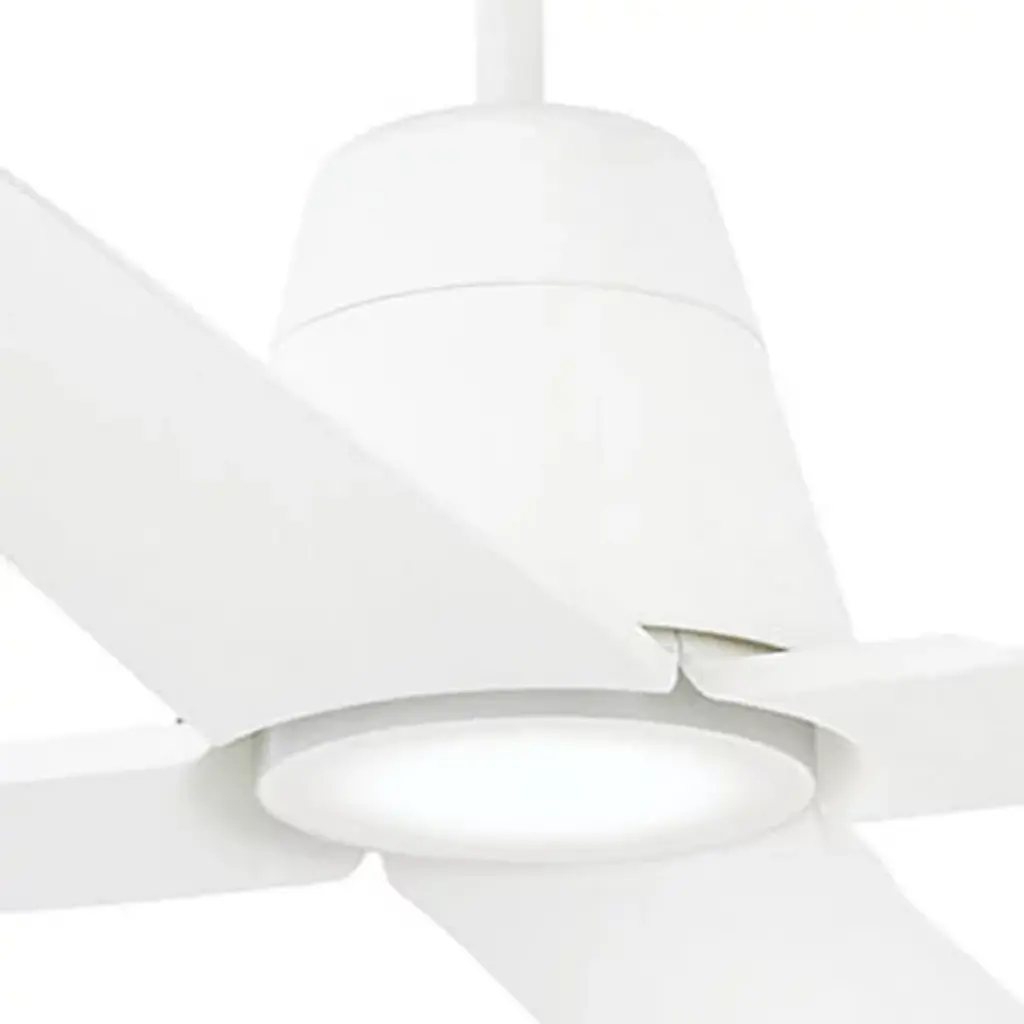 Designed by Jordi Busquets, the Faro Barcelona Typhoon Indoor/Outdoor Ceiling Fan is a simple, but effective 50” ceiling fan. Rated for indoor or outdoor applications, the Typhoon features a crisp White finish that covers its entirety and makes a clean contemporary addition to any space. A simple canister housing carries 4 flat edge blades and pushes over 6,400 cubic feet of air per minute. It also features anticorrosive treatment for wet locations and includes a handheld remote with purchase.