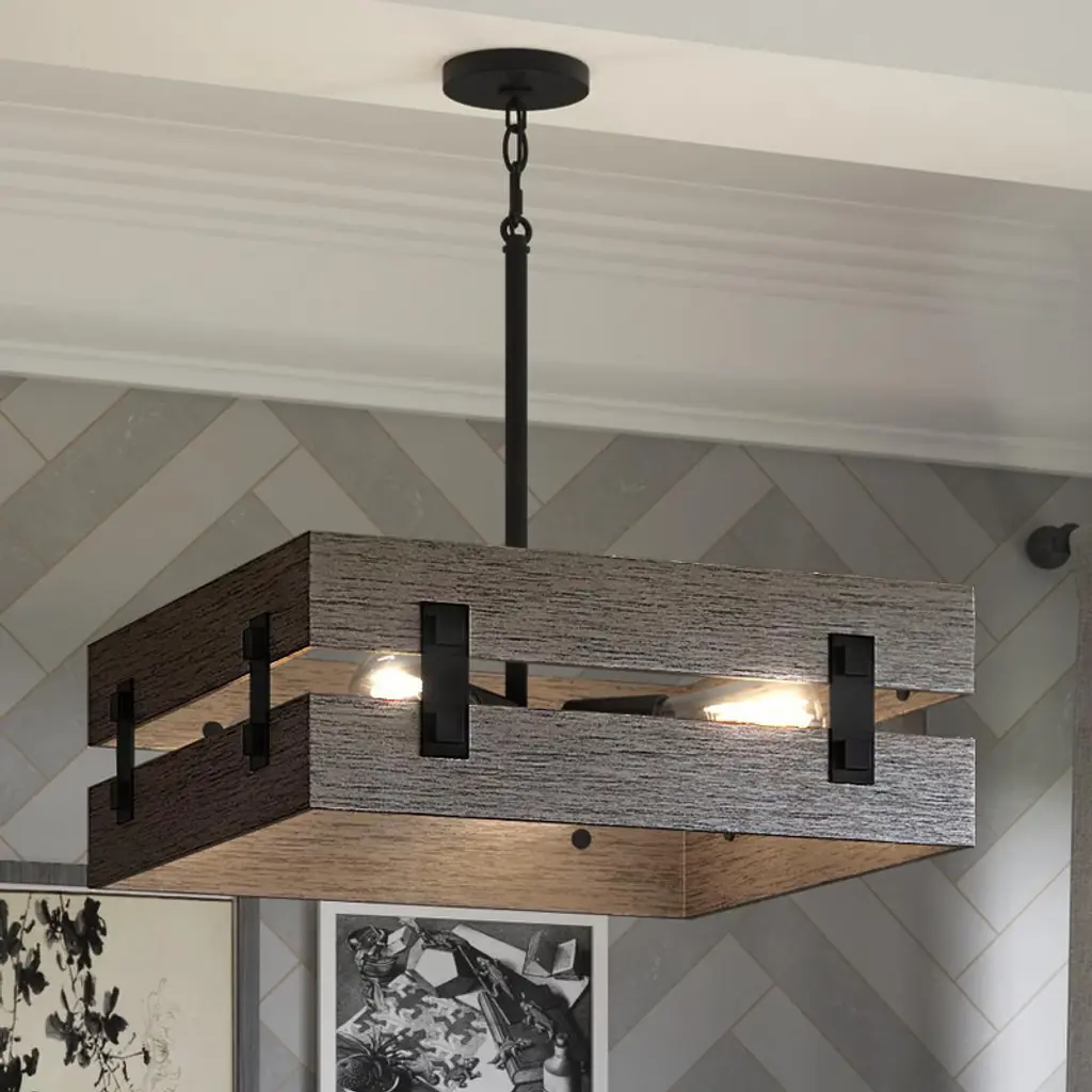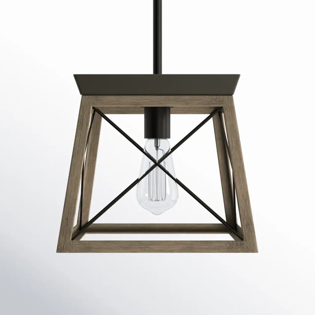 The Berkeley collection brings a farmhouse demeanor to any space thanks to the rustic pattern woven into the design. The geometric construction leverages multiple tones to emphasize the rustic flair alongside the vintage undertones. A thin tapered rectangular plate starts off the design before transitioning into a wood-stained trapezoid framework. The sleek open framework features crosshatch wires around all the open faces but the base. The thin wires add a contrasting design element perfect for matching the encased socket sleeves, and against that dark-hued detail, the vintage-style bulbs stand out beautifully.