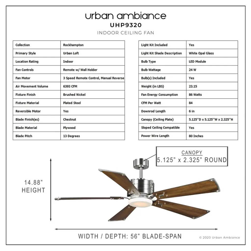 Urban Ambiance Luxury Transitional Ceiling Fan, 14.875''h X 56''w, Brushed Nickel Finish, Uhp9320