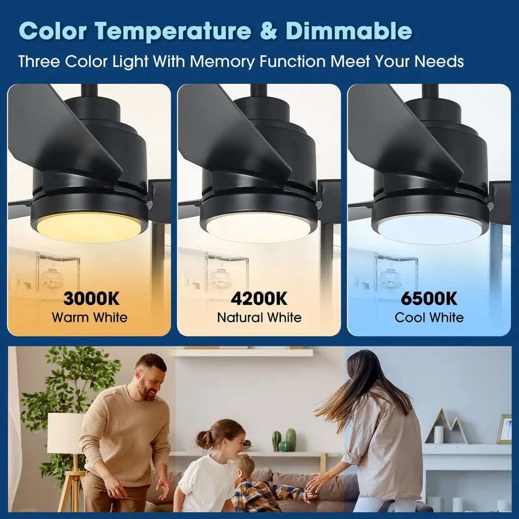 Transform your living space with this 42-inch DC Motor Modern Downrod Ceiling Fan with LED Light and Remote Control.【High-Efficiency DC Motor】: DC motors are more energy efficient than traditional AC motors, which can reduce electricity costs, and the silent motors ensure no disruption to your daily relaxation or work.【Integrated LED Light Kit】: This energy-saving lamp comes in 3 color temperatures (warm white, cool white, daylight) to suit any mood or activity and has a long lifespan.【Durable and long-lasting】: The fan blades are made of high-quality materials that resist wear and corrosion, ensuring a long lifespan and consistent performance.【Black Industrial Design】: The fan features a sleek modern black design that will add a stylish touch to any room.【Convenient Remote Control】: The fan comes with a remote control, which allows you to adjust the fan speed and light brightness from anywhere in the room.
