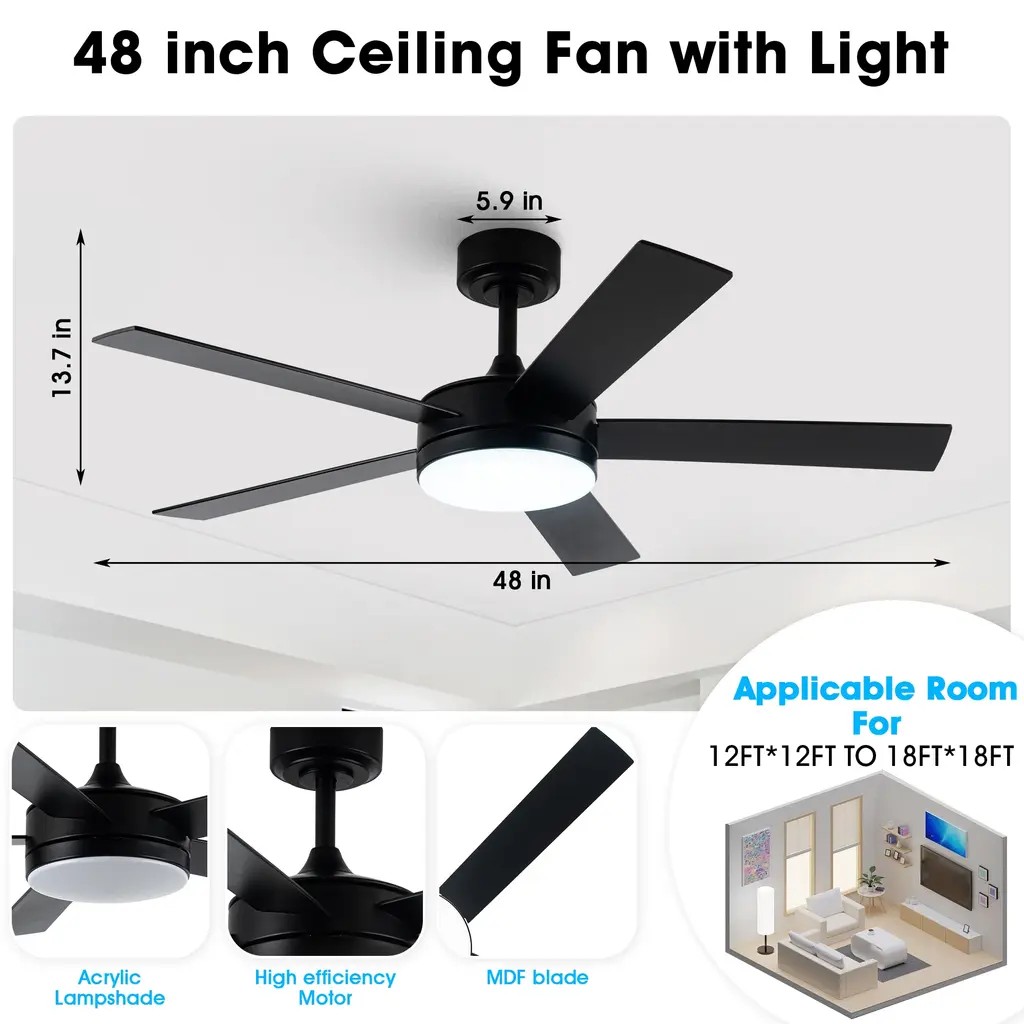 Enhance the aesthetics of your space with this stylish 48" industrial ceiling fan. Boasting a crisp black, white, or brushed nickel finish, this ceiling fan seamlessly combines simplicity and style. Moreover, the fan is equipped with five MDF blades and an 18W LED light, for which the bulb is included. This light can be adjusted to your preference in color temperature, with options ranging from warm white (3000K), natural white (4000K) to cool white (6000K). Additionally, comprehensive instructions are provided to ensure a hassle-free installation process. Despite its sophisticated design, the fan is specifically designed for use in dry indoor environments, therefore, it's not recommended for outdoor or damp indoor locations. With this ceiling fan, you can not only improve the comfort of your space but also its overall aesthetic appeal.