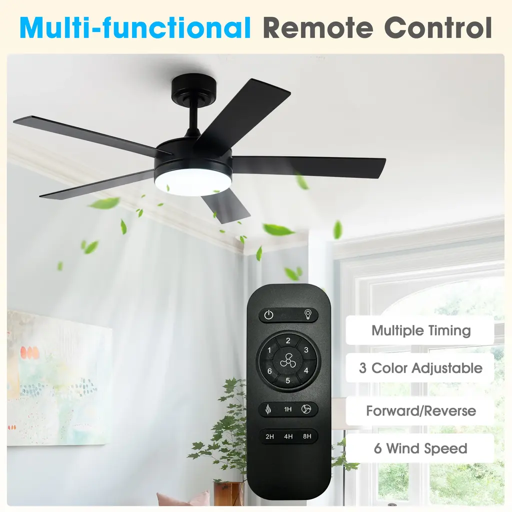 Vaczon 48" 5 Blades Industrial Dc Motor Ceiling Fan With Led Lighting And Remote Control - White