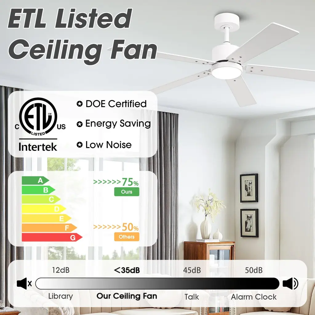 Vaczon 52" Dc Motor Ceiling Fan With Led Lighting And Remote Control - White