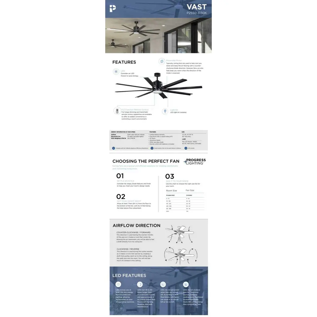 Vast 72 Inch Black Ceiling Fan, Progress Led