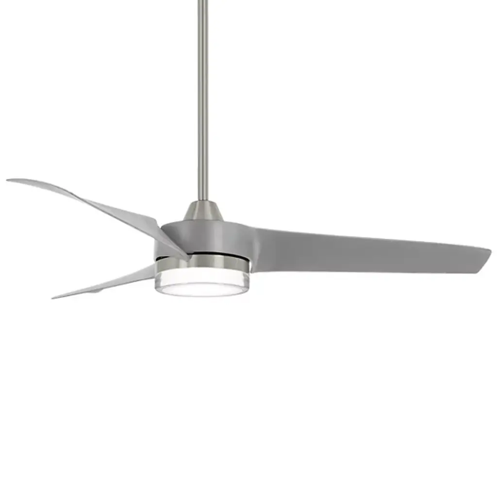 Find comfort with the contemporary Veer LED Smart Ceiling Fan from Minka Aire Fans. Your ceiling fan is composed of fine metal. A powerful motor allows 3 streamlined blades to effortlessly circulate the air in your room. Your ceiling fan’s glass shade is brilliantly illuminated by an LED, enhancing the visibility of your surroundings. Easily adjust the brightness level of the LED by pairing the Veer 56-Inch Ceiling Fan with an ELV dimmer.