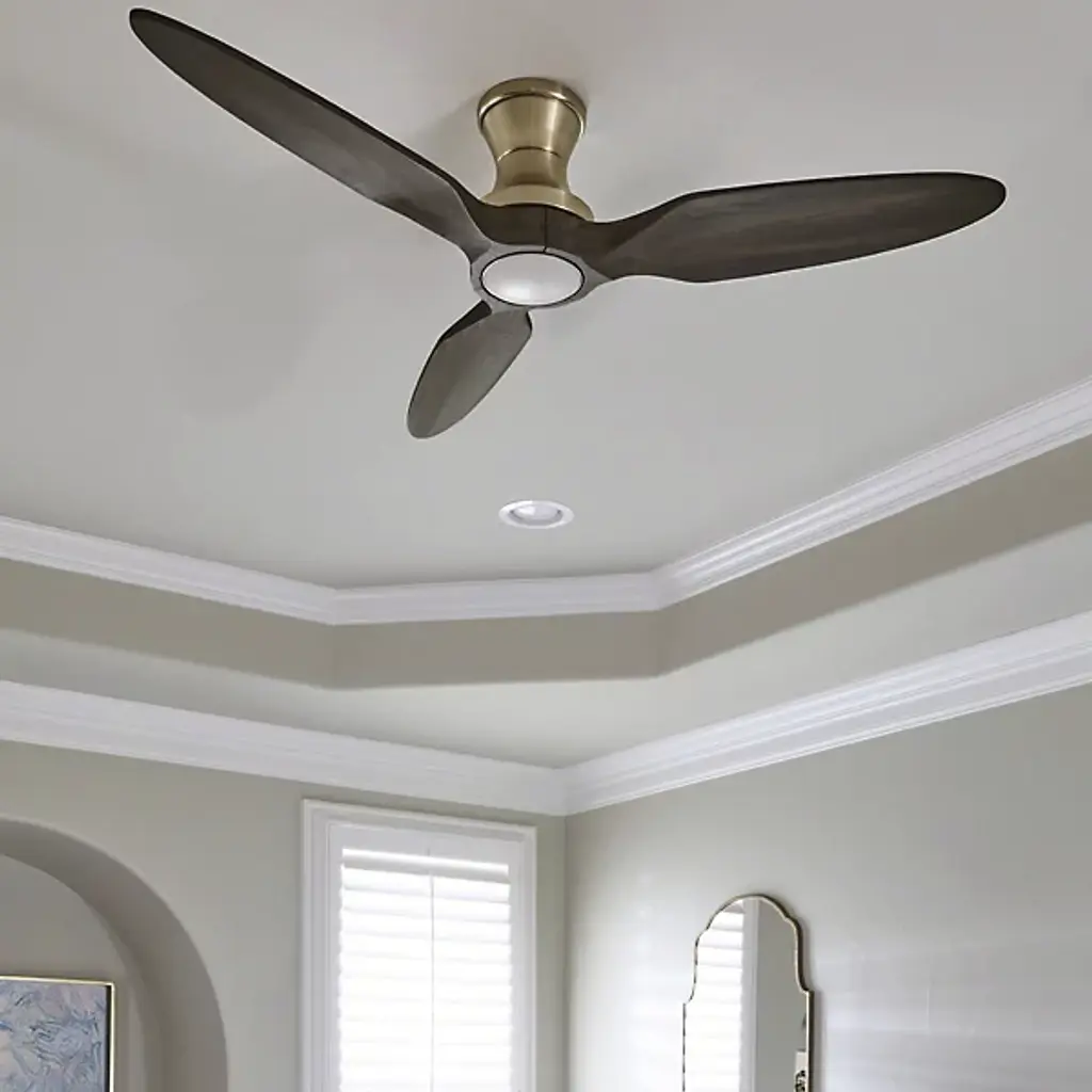 The Veleta LED Ceiling Fan from Quorum International features a sleek, modern design with three sculpted wooden blades that converge around a minimal central cap. Its streamlined motor housing enhances the fan’s refined aesthetic without distraction. Ideal for rooms with lower ceilings, this dry-rated fan offers effective air circulation and includes an optional 5-light LED fixture with a satin opal diffuser. Blending natural materials with elegant form, it adds style and functionality to contemporary or transitional interiors.