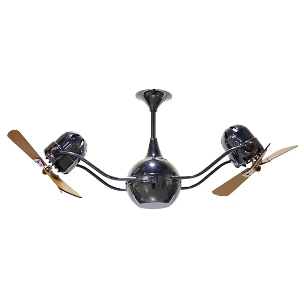 Add a cool, calming presence to your indoor aesthetic with the Vent-Bettina Ceiling Fan by Matthews Fan Company. Designed with efficiency in mind, the MFC rotational fans are designed to circulate heat and air conditioning more efficiently than traditional paddle fans. The strong aluminum and steel body ensure durability and make for sturdy design. The fan motor mount and fan head knob are made from marbleized Bakelite, while the fan head is situated at a 60-degree angle. Use this large-scale indoor overhead fan to keep your home cool and comfortable all year long.