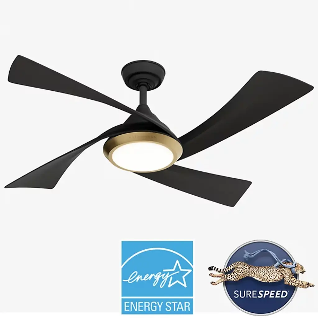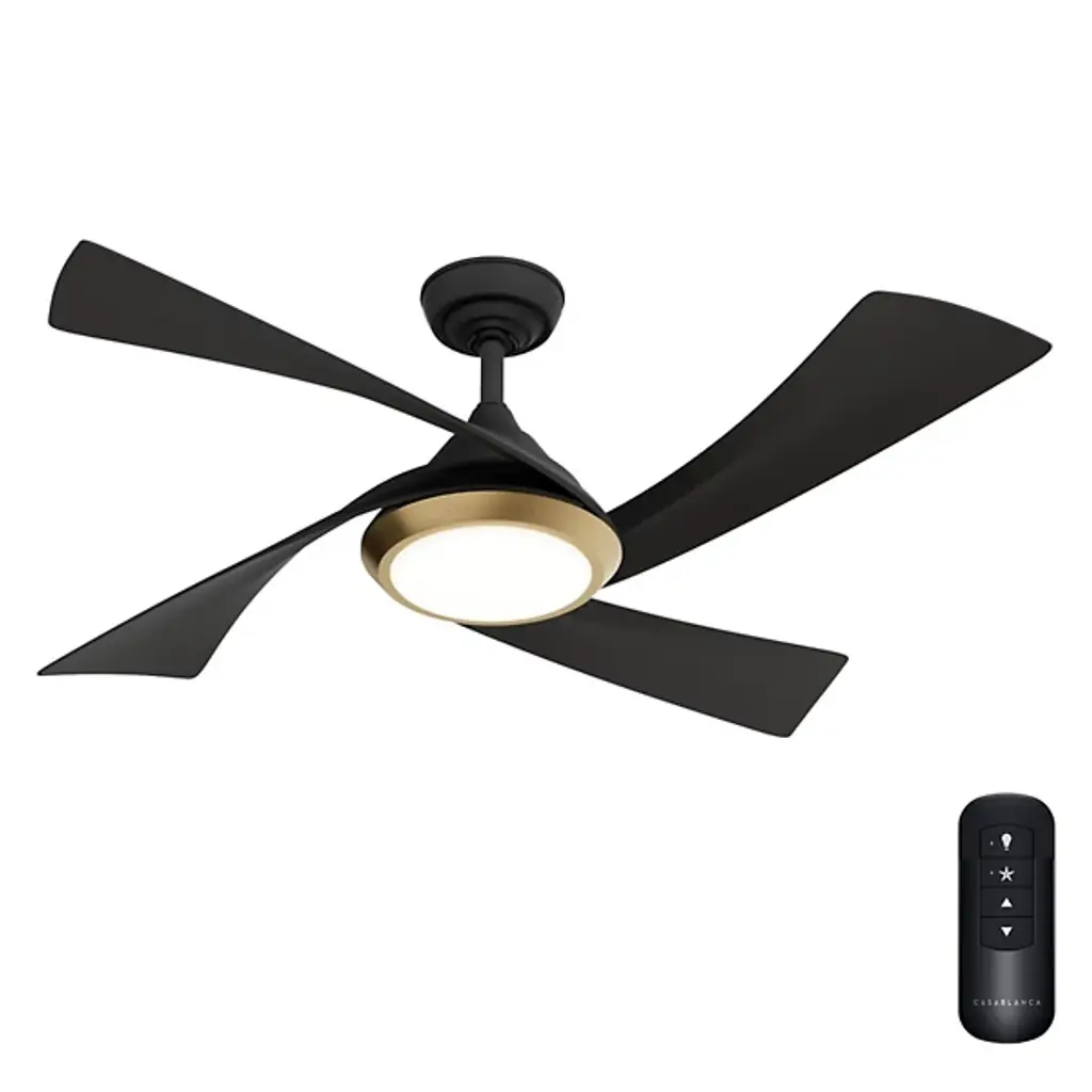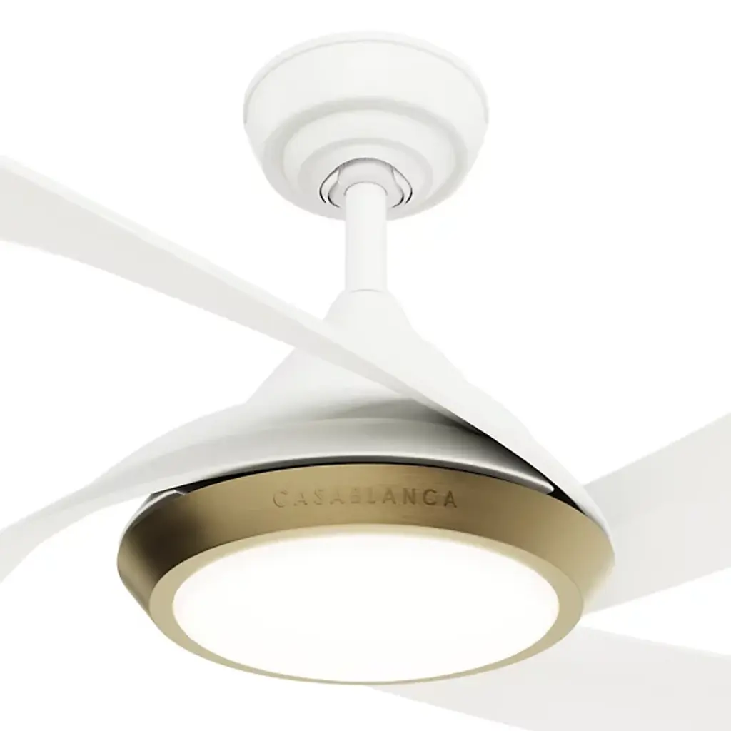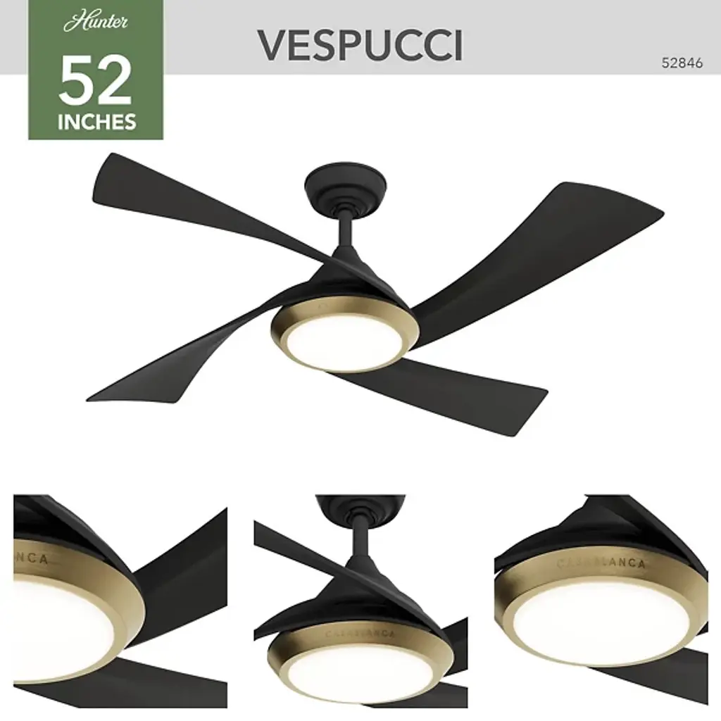 The Vespucci Outdoor LED Ceiling Fan from Casablanca Fan Company combines modern design with exceptional functionality. Its damp-rated construction ensures durability, making it a perfect choice for covered outdoor spaces while maintaining a sleek and stylish aesthetic. Featuring integrated LED lighting, it offers customizable illumination to suit any mood or occasion. Powered by an energy-efficient DC motor, this fan delivers whisper-quiet operation and impressive airflow. Elevate your home comfort with this fan, a sophisticated addition to any space.