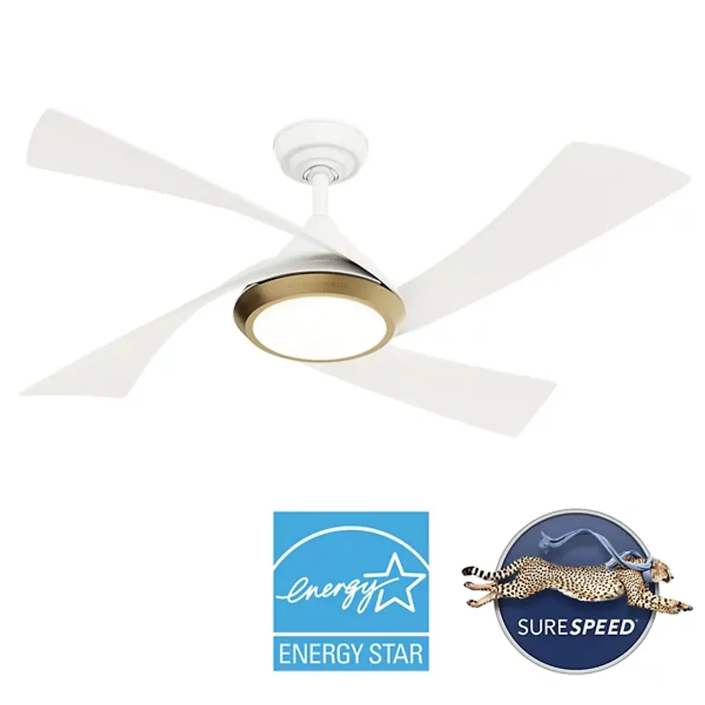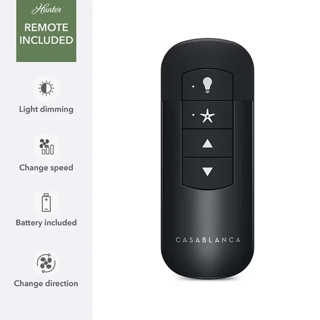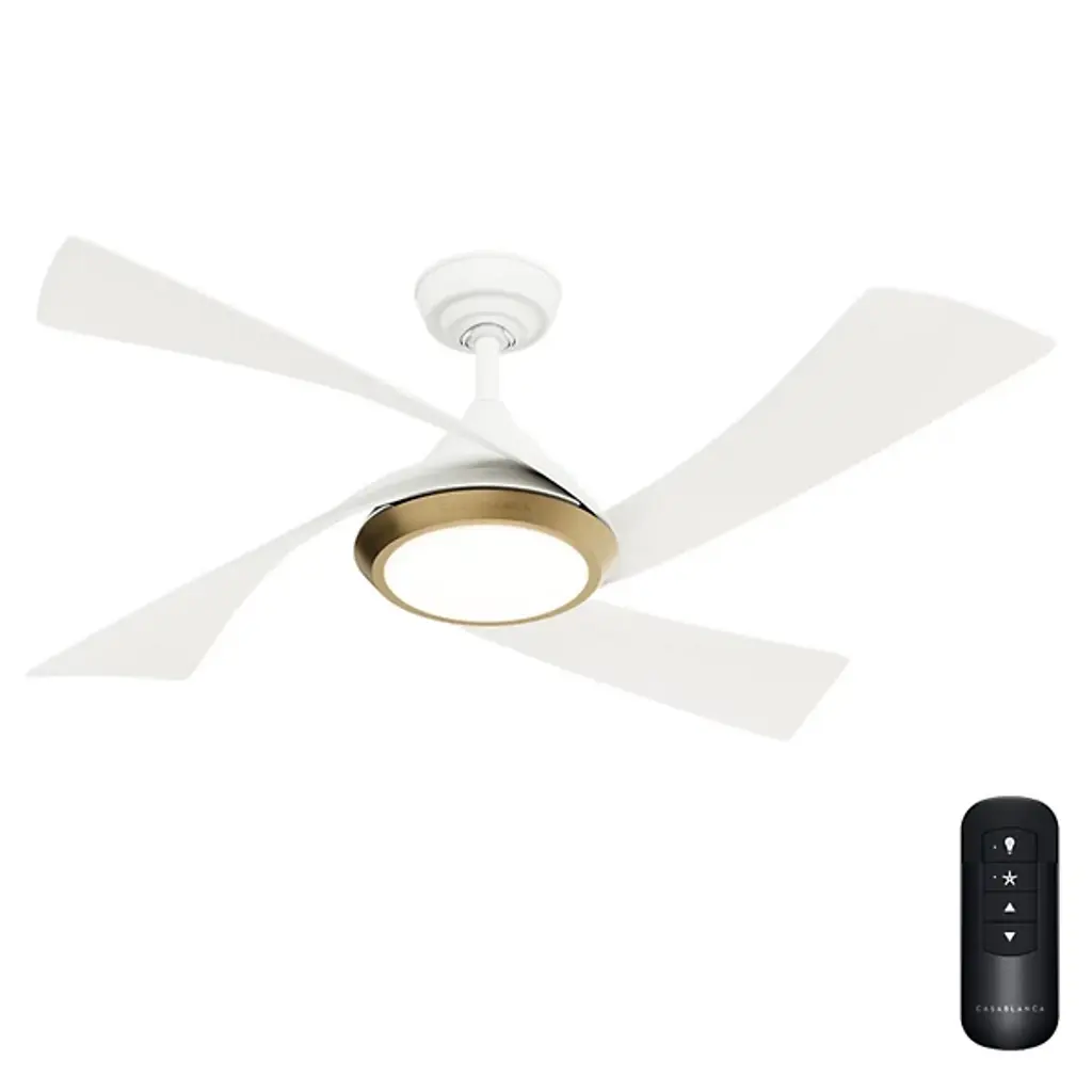 The Vespucci Outdoor LED Ceiling Fan from Casablanca Fan Company combines modern design with exceptional functionality. Its damp-rated construction ensures durability, making it a perfect choice for covered outdoor spaces while maintaining a sleek and stylish aesthetic. Featuring integrated LED lighting, it offers customizable illumination to suit any mood or occasion. Powered by an energy-efficient DC motor, this fan delivers whisper-quiet operation and impressive airflow. Elevate your home comfort with this fan, a sophisticated addition to any space.