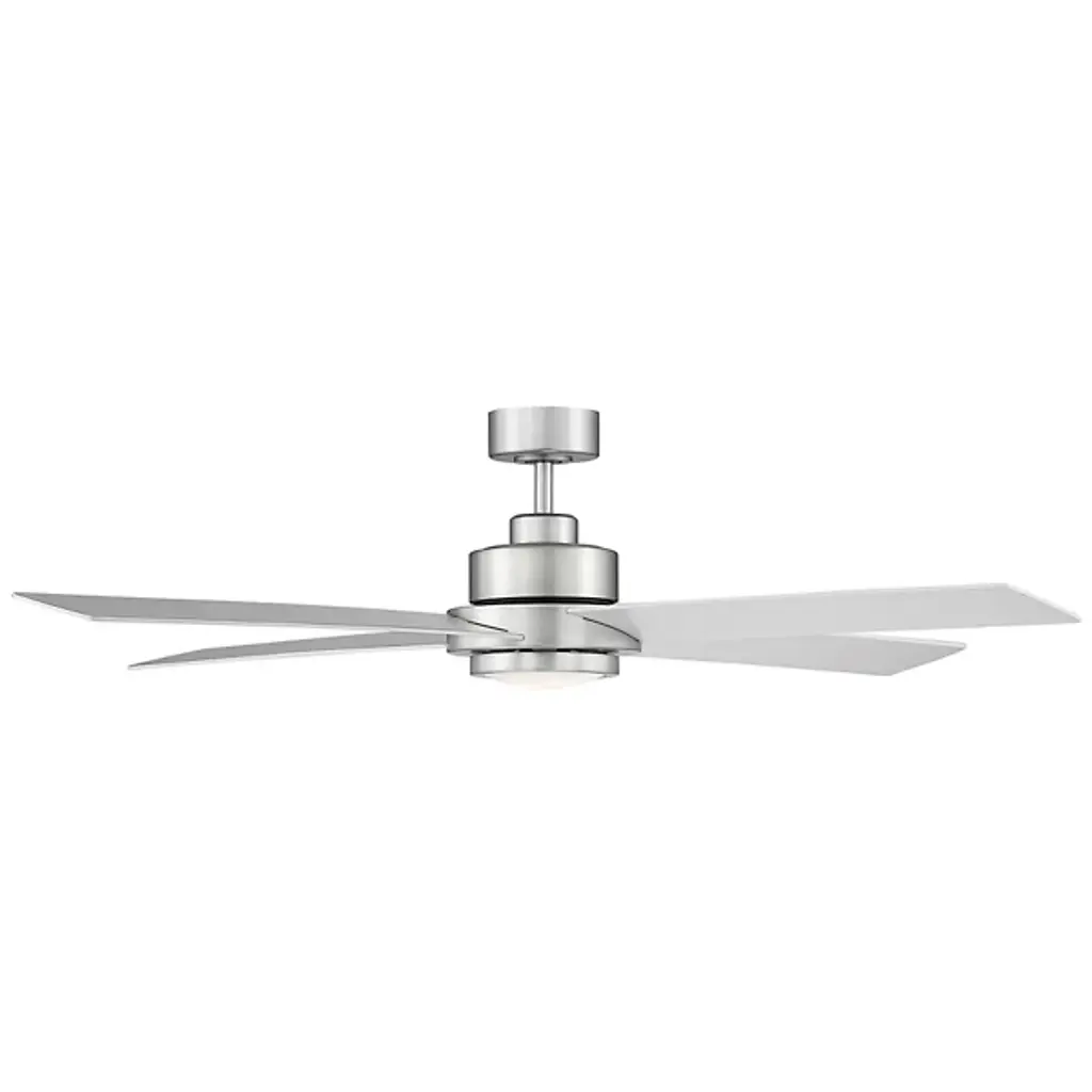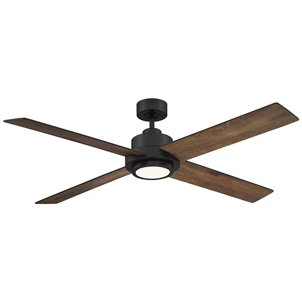 Alder & Ore's Vivienne LED Ceiling Fan is a handsome installment that will elevate the décor for any modern space. Its clean lines partnered with bold finishes makes it perfectly suited for every room. Built with a DC motor and equipped with four 56" blades, this fan disseminates a cool breeze creating a relaxing environment. Damp area rating allows the Vivienne to be installed indoor or under an outdoor patio, extending your oasis. The included remote control conveniently manages the fan's six speeds, direction, and integrated LED lighting.