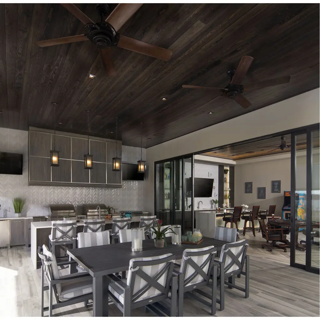 A picture of modern design, the functional minimalism of the Vogue 68in ceiling fan is a product of advanced design. Five long and graceful blades made of carved wood move air with remarkable efficiency. A remote with batteries is included – and controls full range dimming and fan speed capabilities. Vogue also has a reversible motor that can be accessed via a manual switch.