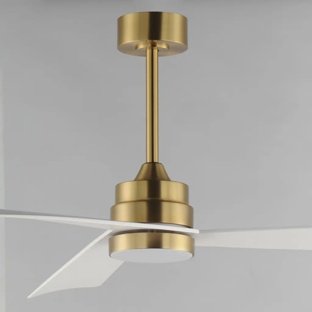 Sharp angular blades come together at the center housing of this fan for a modern, yet transitional look. Available in finishes that match most interior spaces, select from Matte Black, Satin Nickel with Greywood, Natural Aged Brass with White Blades and Charcoal with Driftwood Blades. With a DC motor and magnetic wall mounted remote that is included, this fan is sure to be a stylish addition to your space.