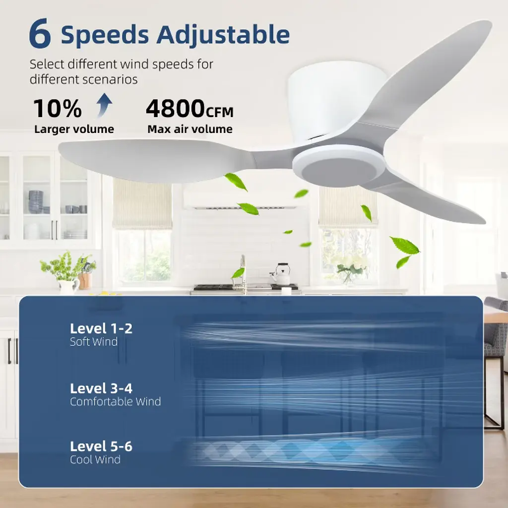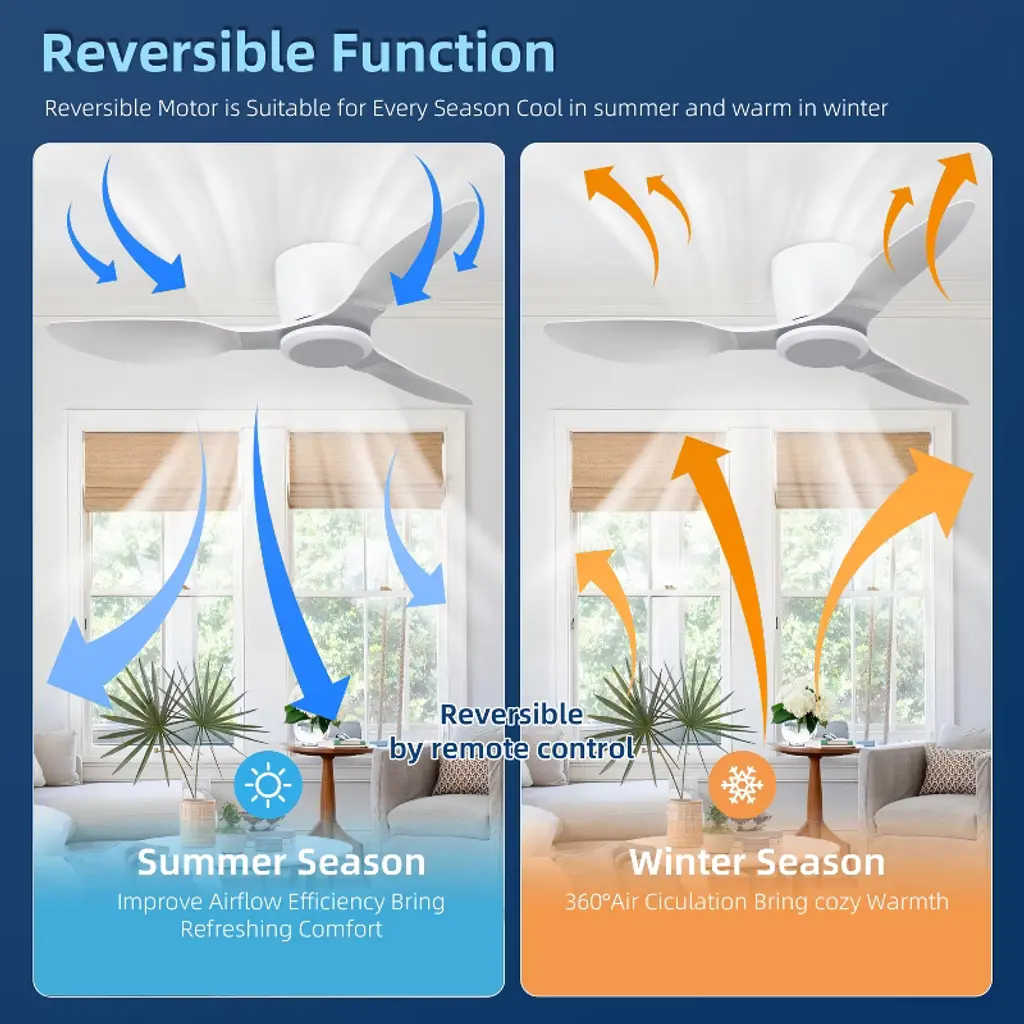 Experience year round comfort with our 42 inch indoor flush mount ceiling fan. Its whisper quiet pure copper DC motor delivers powerful airflow for summer cooling then reverses in winter to evenly circulate warm air saving on energy costs. The included remote gives you effortless control to choose from 6 speed settings and set a timer for automatic shutoff ensuring an uninterrupted nights sleep. Designed for easy installation and noiseless operation it¡¯s the perfect elegant upgrade for any room in your home. Shop now and enjoy a new level of comfort backed by a 1 year warranty.