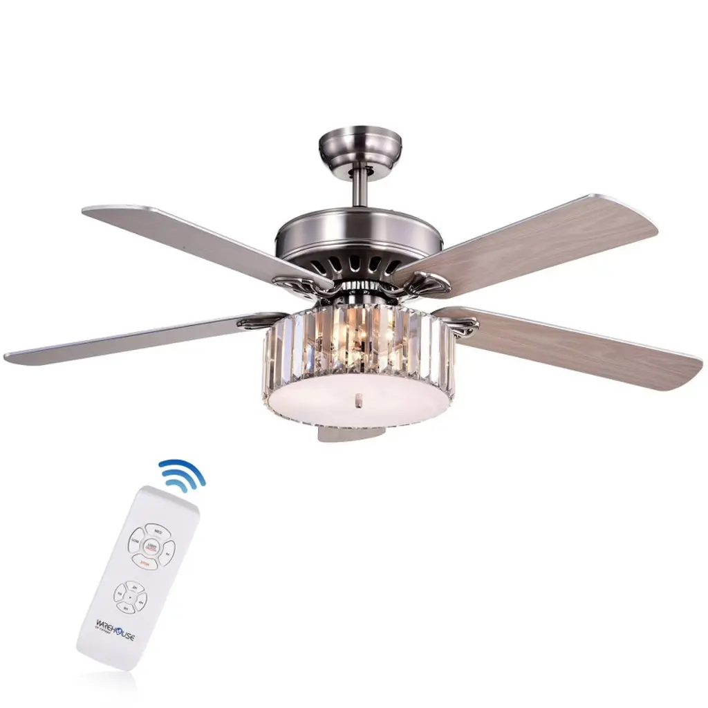 Warehouse Of Tiffany Kimalex 52" 3-light 5-blade Lighted Ceiling Fan With Wood Nickel Crystal Shade With Remote Control
