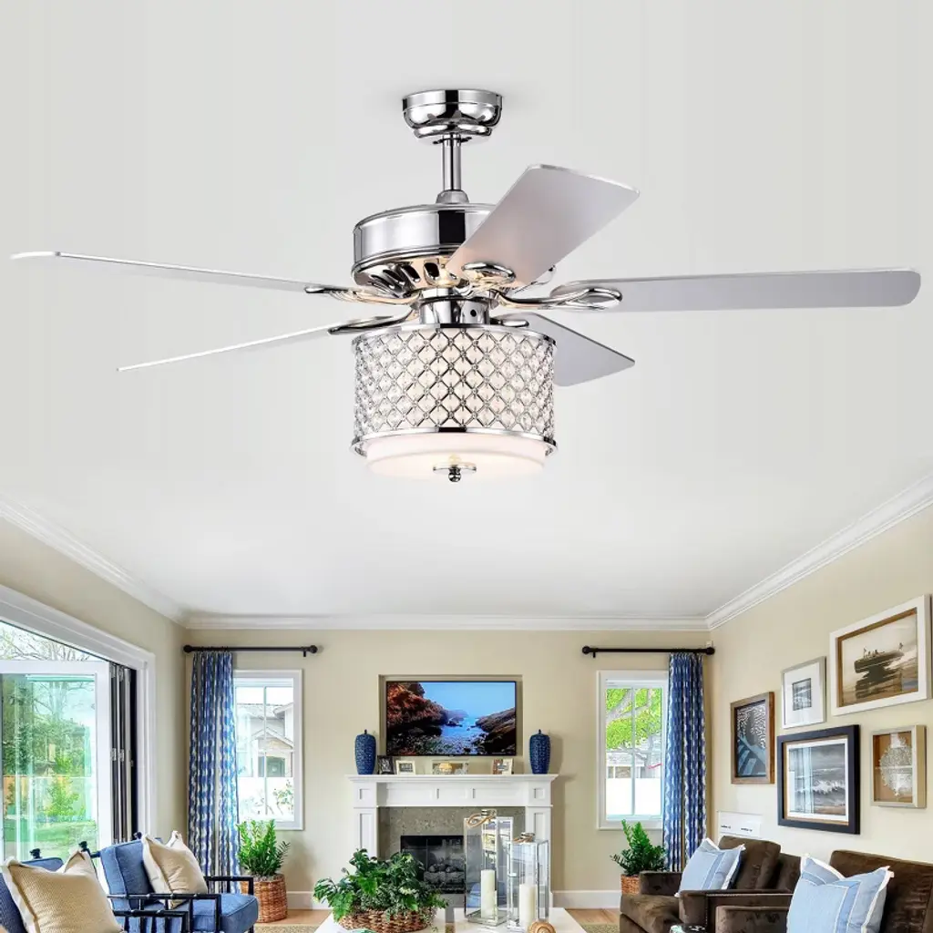 Warehouse Of Tiffany Shelee Chrome 52" 5-blade Lighted Ceiling Fan Two-color Blades Reversible With Remote Control