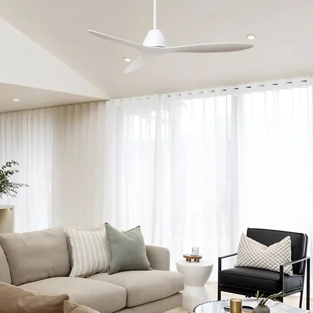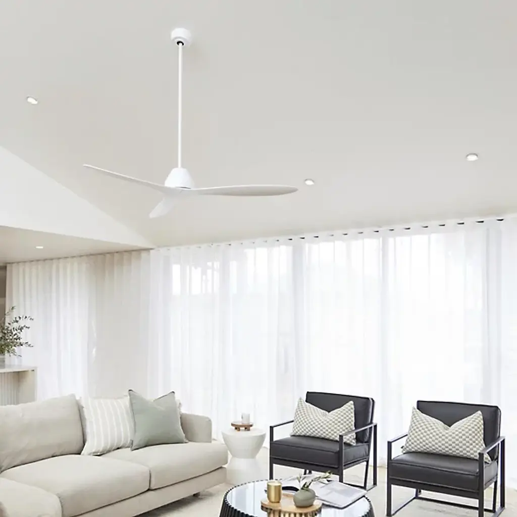 The Whitehaven Lucci Air Indoor / Outdoor Smart Ceiling Fan from Beacon Lighting adds a smooth, ultra-modern appeal to interiors, with efficient engineering and a straightforward design. Designed by Lucci Air, it centers a strong DC motor driving three slender ABS Blades set at a 12-degree angle. The fan is controlled via smart technology or an included handheld remote. This design presents solid functionality with a simple shape, offering strong, silent service that is matched with energy-efficient performance.