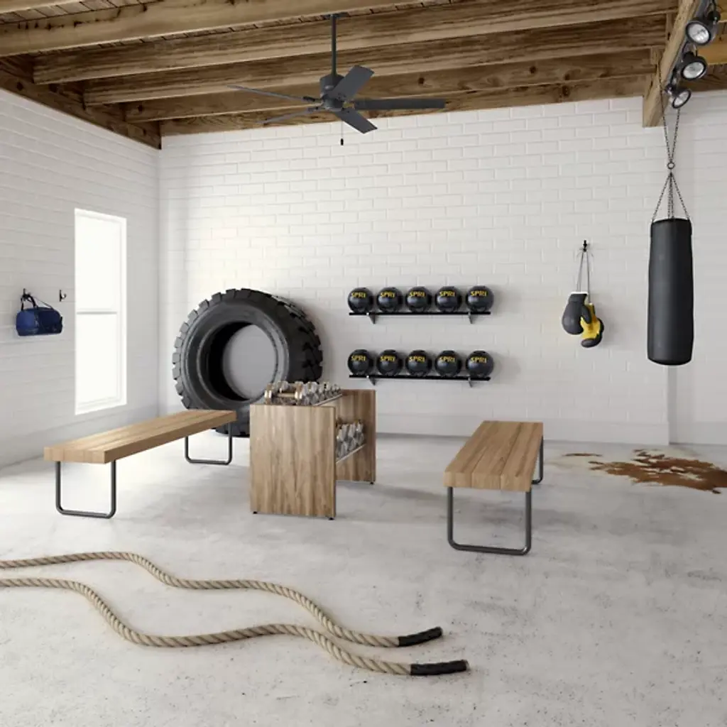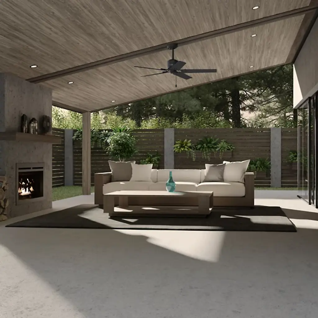Refreshing in looks and functionality. The Windbound Outdoor Ceiling Fan from Hinter Fans circulates an energizing breeze with a whisper-quiet sound. The ceiling fan brings modern industrial styling as it features clean edges and bold accents. In terms of functionality, the fan packs an efficient and wobble-free motor. With a tug on the pull chain, the motor sends the dynamic blades spinning across three separate speeds. The fan’s durable construction and wide span make it ideal in the spacious setting, both inside and outside.