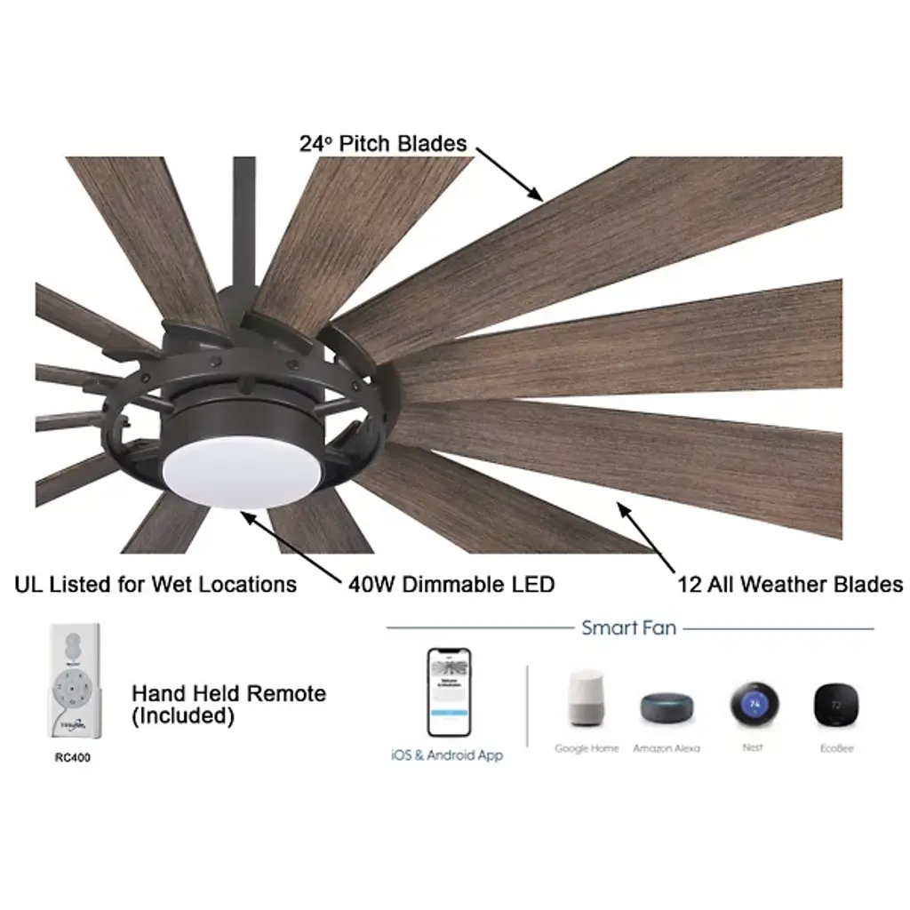 The Windmolen Smart Ceiling Fan gives a substantial amount of airflow with multiple blades weaving within an elaborate centering wheel design. The Windmolen was constructed so that it may be easy to assemble, aerodynamic and an integrated forty watt LED light source for increased light output. It's versatile enough for indoor and outdoor locations, wet rated and last but not least, energy-efficient with a DC motor. Wondmolen can be managed through its remote control or with a smart device. Connect it with either a smartphone, tablet, or Google Home and Amazon Alexa. Download the Bond app to connect to wifi.