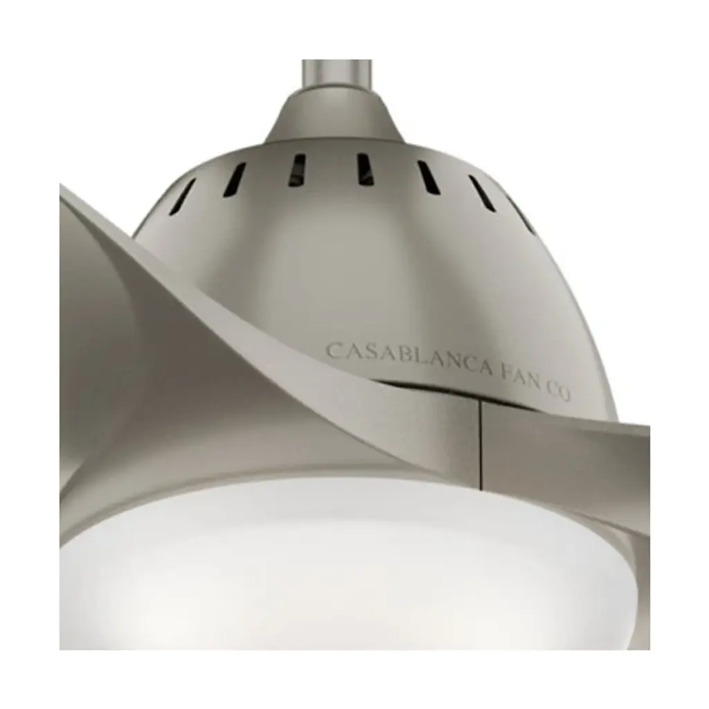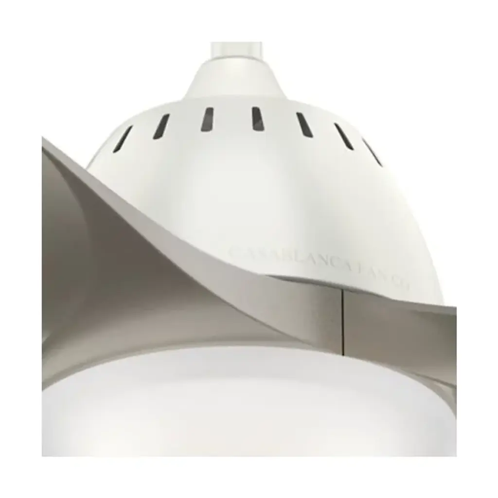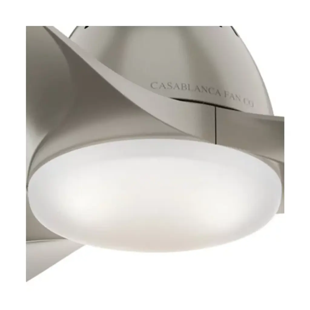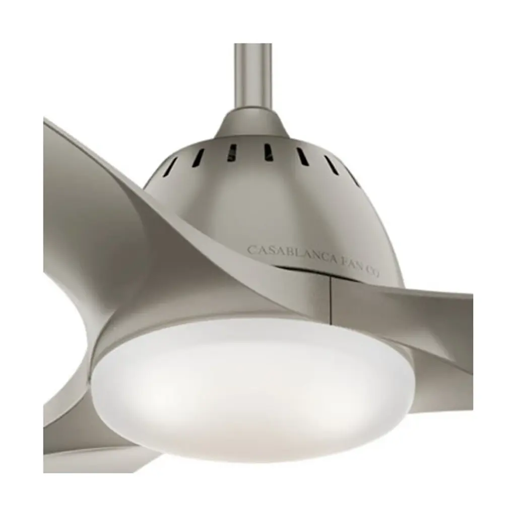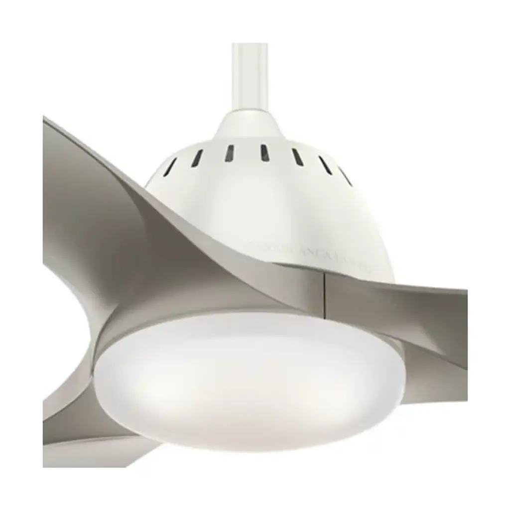 A modern fan with a hint of retro. The Casablanca Fan Company Wisp Ceiling Fan showcases a light, airy personality that emanates an aura of finesse and joviality while cooling its surroundings. Though casual in look, the Wisp Ceiling Fan carries a Direct Drive motor for unparalleled power and silent operation that lasts for decades. Features an integrated light kit with dimmable light for ambiance. The Wisp Ceiling Fan includes a universal handheld remote with purchase.