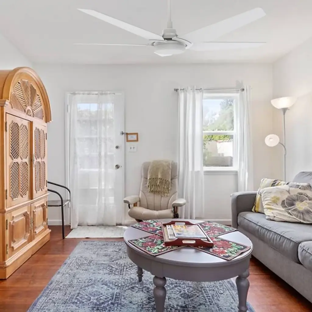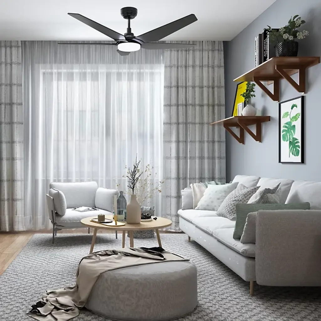 Creatively composed and ultra-convenient. The Woodrow LED Smart Ceiling fan is a contemporary furnishing from Carro USA. The blades gently curve upward, giving a gravity-defying look to the overall silhouette. Featuring integrated LED with warm and cool settings, it’s an energy-efficient item with a longer lifespan than the traditional lighting unit. Compatible with wi-fi apps and voice command via Google Assistant, Amazon Alexa, and Siri Shortcuts, the Woodrow is a smart option for many reasons.