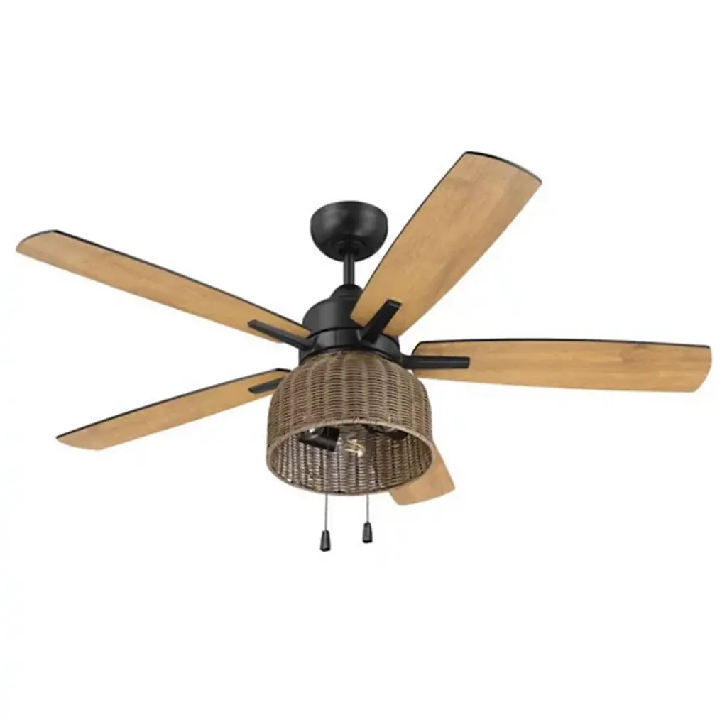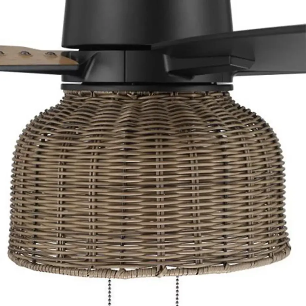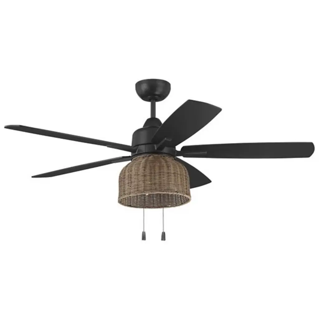The Woven Indoor/Outdoor Ceiling Fan from Craftmade Fans brings intricacy to your décor. It is a blend of Bohemian and transitional styles, showcasing a woven rattan shade. It is illuminated by LEDs that enhance the visibility of your surroundings. This sloped-ceiling adaptable fixture is powered by an AC motor that lets 5 blades rotate in forward and reverse directions. 3 speeds let you easily customize airflow for a comfortable experience.