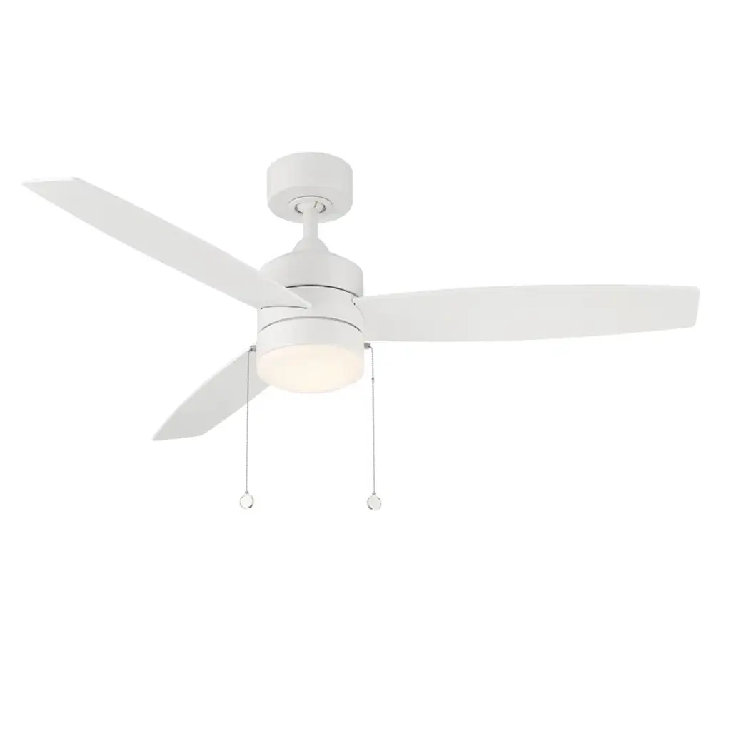 The Wyatt LED Ceiling Fan by Alder & Ore has a sleek, modern look that adds a lovely touch to the spaces it helps to cool. Providing powerful airflow, this three-blade fan cycles through three available speed settings and a reversible option thanks to a set of pull chains. The blades are precision balanced and surround an integrated light kit that offers plenty of energy-efficient illumination to surroundings, making this a bright choice for a variety of rooms.