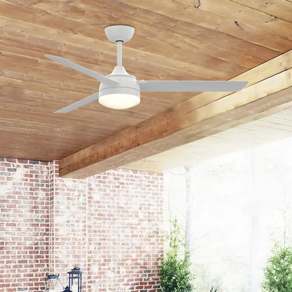Showcasing a sleek, modern look that blends into any indoor or outdoor setting. The Fanimation Xeno Outdoor Ceiling Fan offers powerful 3-speed operation with an integrated LED light kit for cost-saving efficiency and added luminance in dark spaces. Features fanSync technology for ease of operation through your smart device. Wall control included with purchase.
