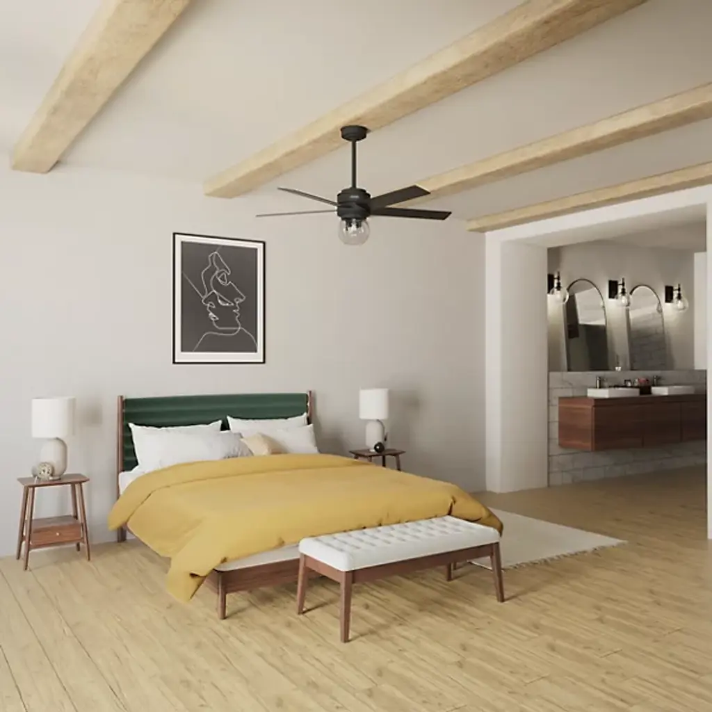 The Xidane Ceiling Fan with Light from Hunter Fans epitomizes the perfect fusion of understated elegance and exceptional performance, embodying the essence of transitional design with cutting-edge functionality. It is a refined yet effective air conductor tailored to craft an optimal ambiance in any space. Concealed within its sleek profile lies the powerful Reversible, 3-speed WhisperWind® motor, ensuring efficient airflow with whisper-quiet operation. Backed by the Exclusive SureSpeed® Guarantee, it delivers consistent high-speed cooling whenever required, making it a testament to serene and effectively cooled living environments.