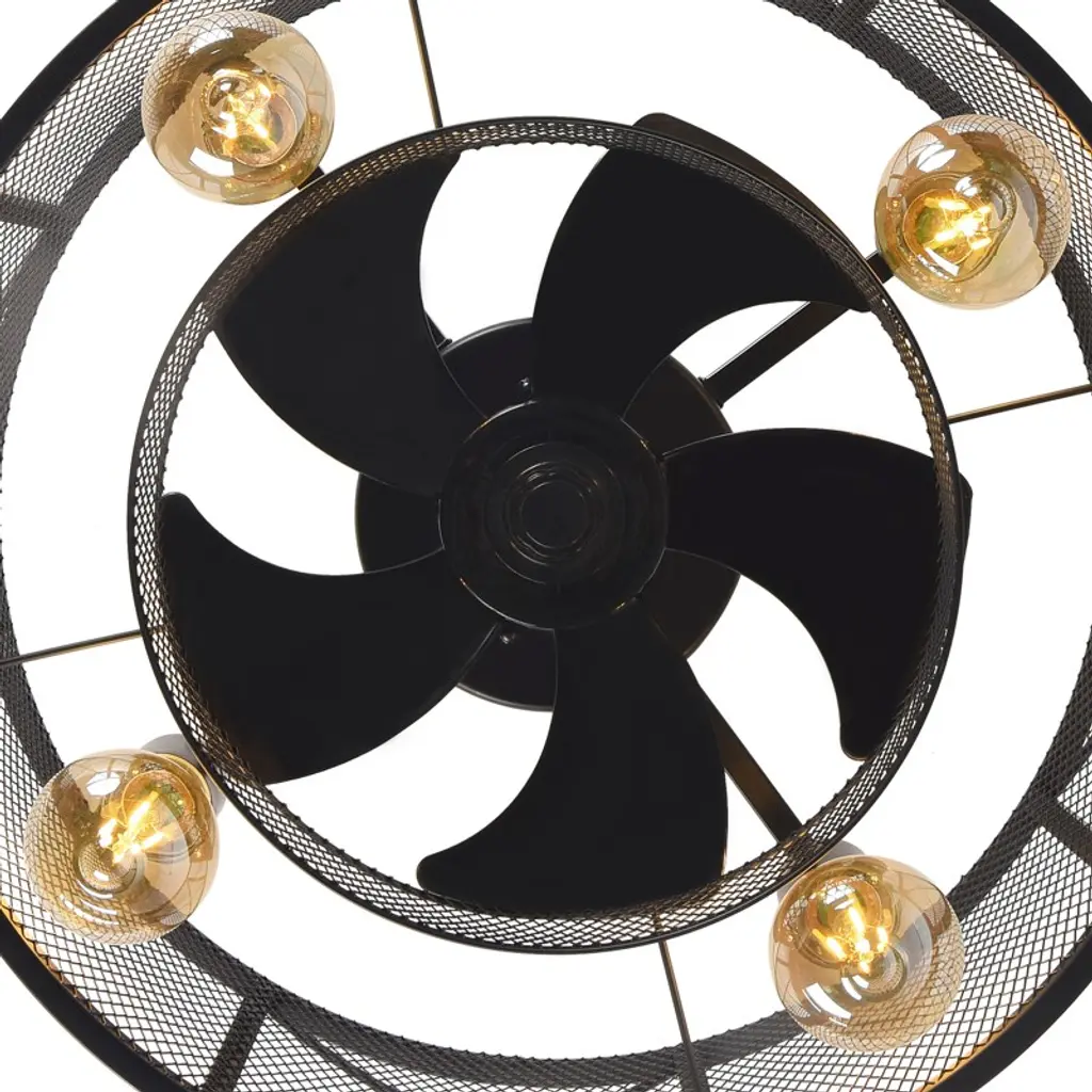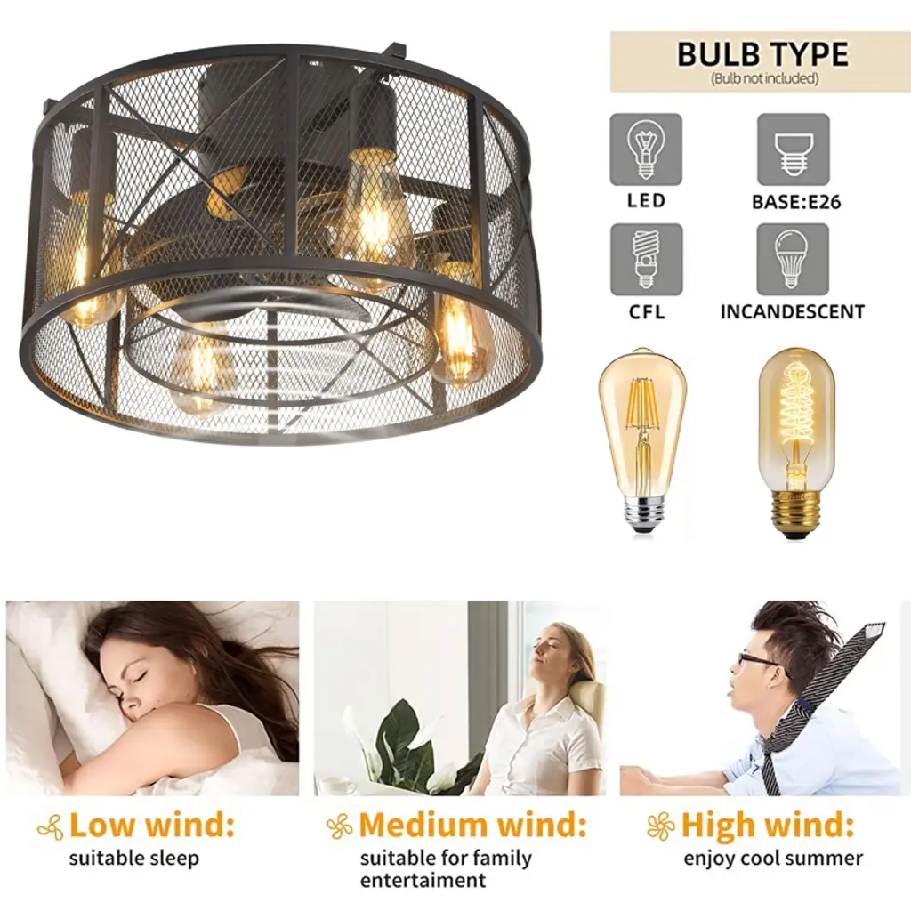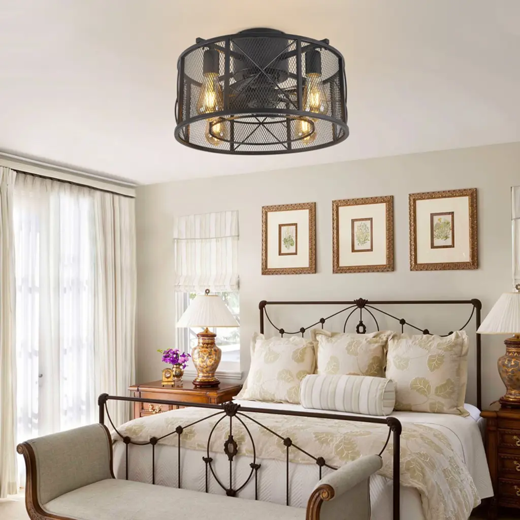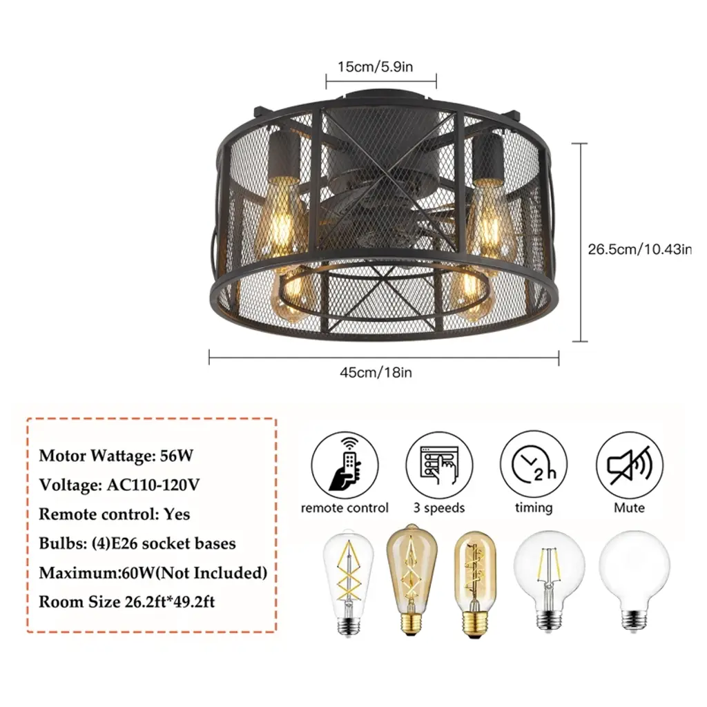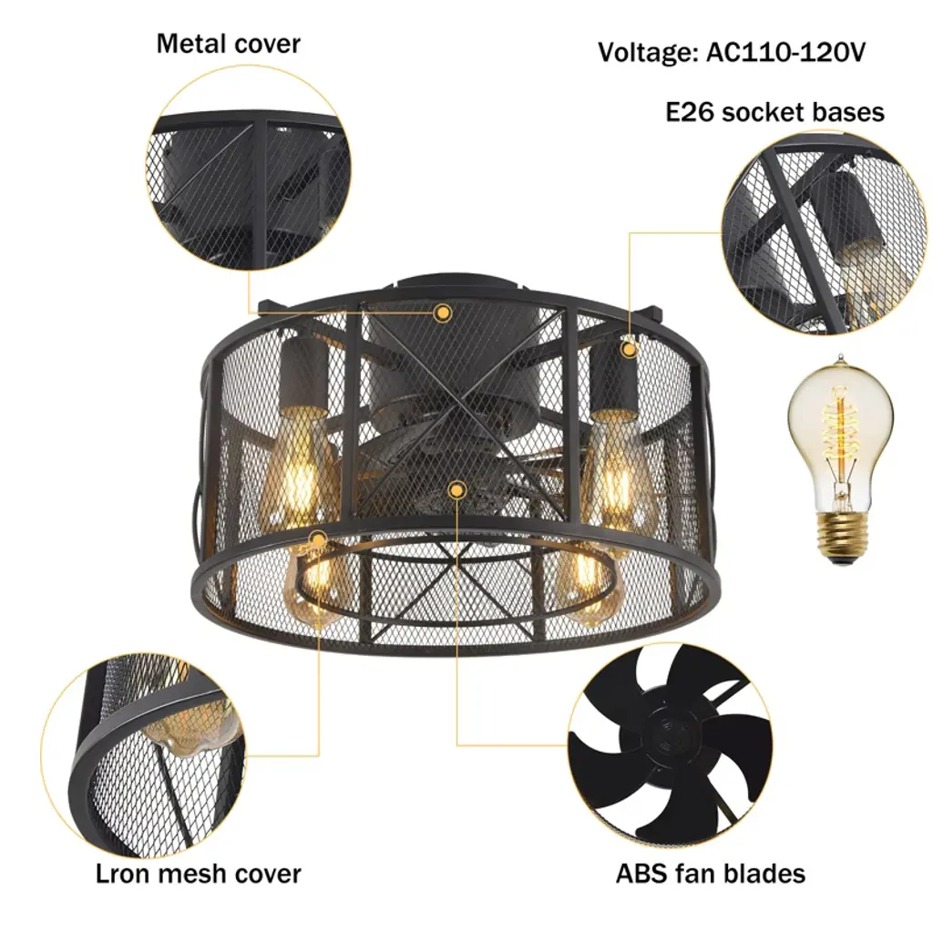 Yiyibyus 18 In. Indoor Black Retro Caged Industrial Enclosed Ceiling Fan With Light
