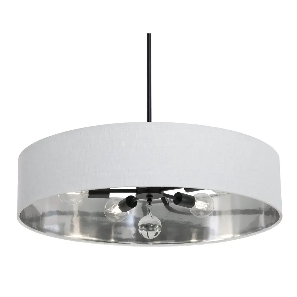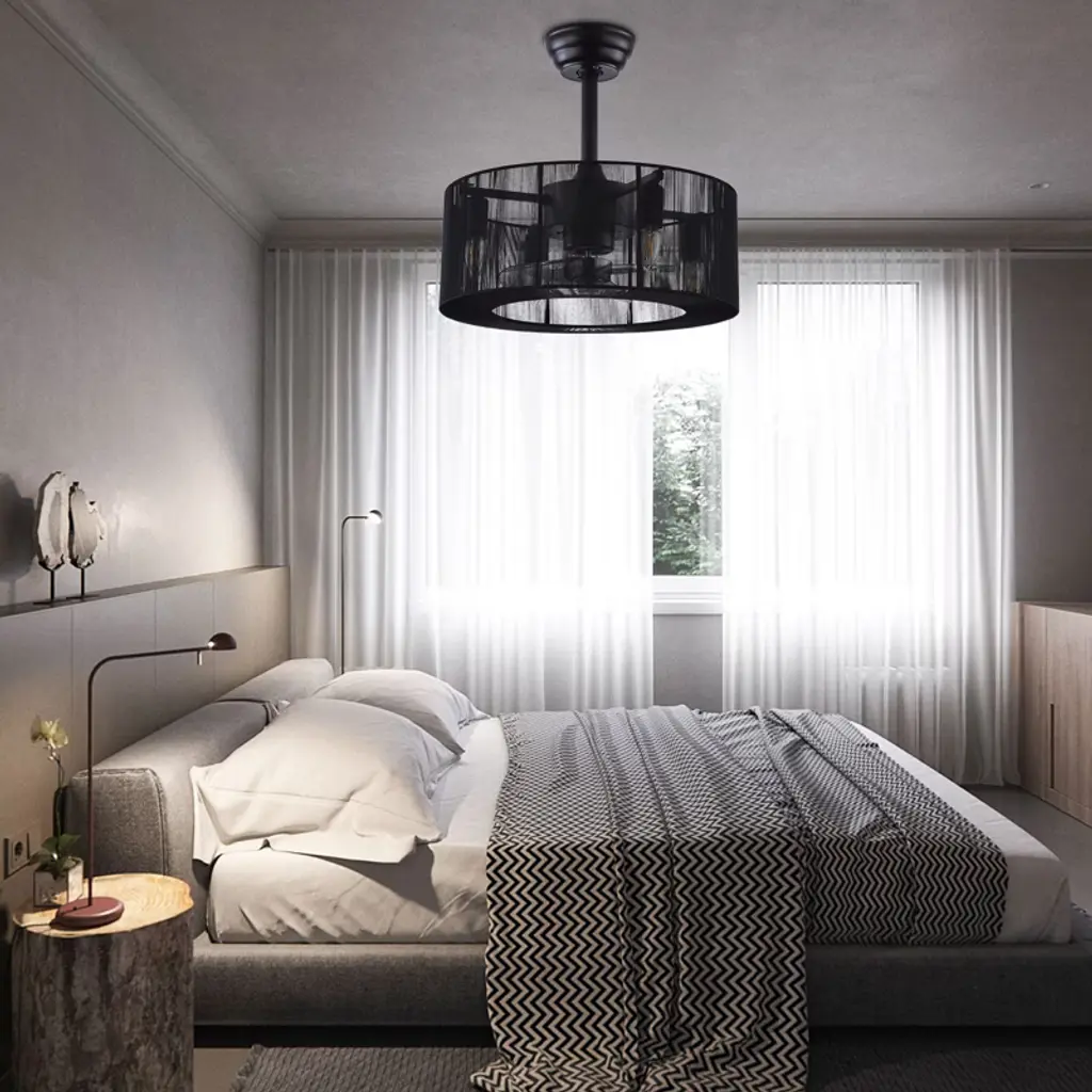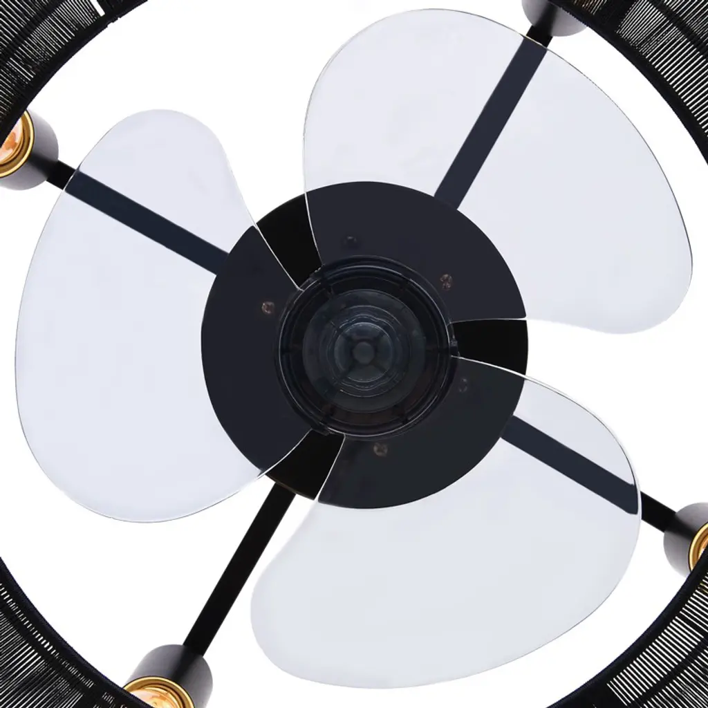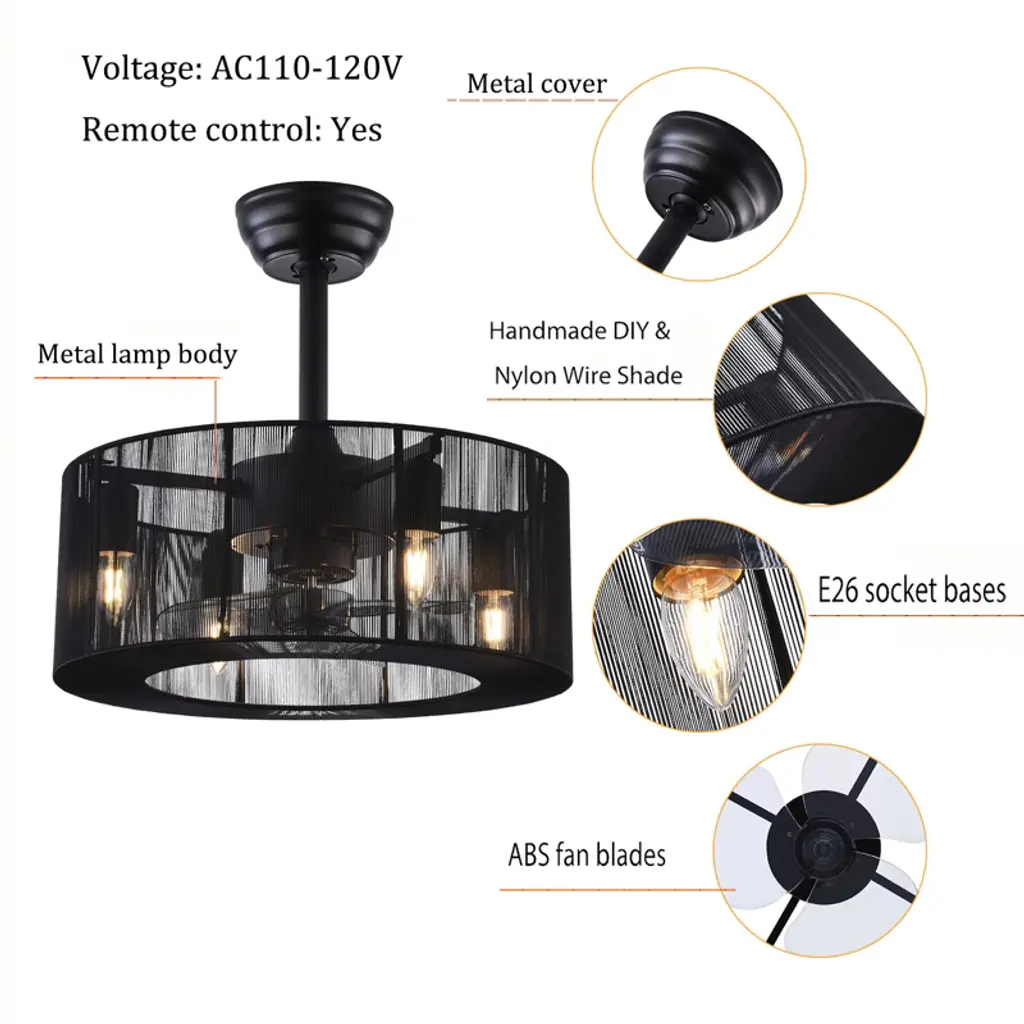 This 18-inch ceiling fan light combines modern style with practical functionality, featuring a classic black finish and a round open lampshade for wide, ambient illumination. It is equipped with three durable ABS fan blades and a powerful, yet whisper-quiet pure copper motor that offers three adjustable speeds and a built-in timer for customized comfort. Controlled by an included remote, this 2-in-1 fixture efficiently cools your space while providing excellent lighting, making it a stylish and energy-saving addition to any room in your home. Specifications Material: Iron, ABS, Nylon, Copper Process: Spraying Paint Color: Black Style: Modern Efficiency: E Assembly Required: Yes Indoor/Outdoor Usage: Indoor Mounting Type: Ceiling Mount Control Method: Remote Control(Included), Wall Switch (Not Included) Remote Control Distance: 3-5m/9.84-16.4ft Battery Type: 2* AAA Batteries Light Source Type: 4* E26 Bulbs(Not Included) Motor Type: Pure Copper Motor Voltage: AC 110- 120V Max. Single Bulb Power: 60W Number of Fan Blades: 3 Wind Speed Gears: 3 Timing: 1/2/4H Light Applicable Area: 10-15m²/107.64-161.46ft² Motor Power: 56W Noise: 35dB Base Size: 15cm/5.9in Hanging Rod Length: 12.5cm/4.92in, 20cm/7.87in Product Height: 30.5cm/12in(With Short Rod), 38cm/14.96in(With Length Rod) Lampshade Size(D*H): 46*18cm/18*7.08in Base Diameter: 15cm/5.9 inches