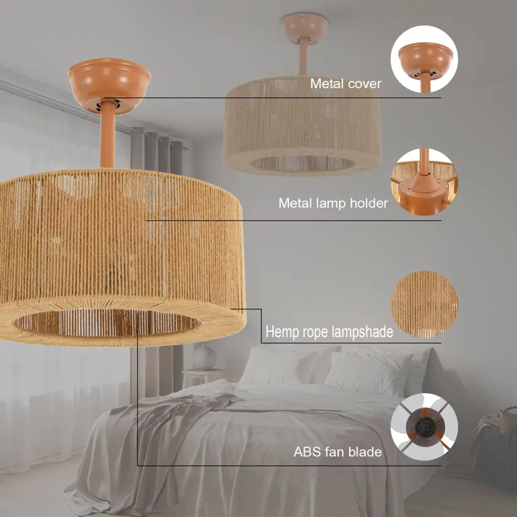 This 18-inch ceiling fan light combines modern style with practical functionality, featuring a classic black finish and a round open lampshade for wide, ambient illumination. It is equipped with three durable ABS fan blades and a powerful, yet whisper-quiet pure copper motor that offers three adjustable speeds and a built-in timer for customized comfort. Controlled by an included remote, this 2-in-1 fixture efficiently cools your space while providing excellent lighting, making it a stylish and energy-saving addition to any room in your home. Specifications Material: Iron, ABS, Nylon, Copper Process: Spraying Paint Color: Black Style: Modern Efficiency: E Assembly Required: Yes Indoor/Outdoor Usage: Indoor Mounting Type: Ceiling Mount Control Method: Remote Control(Included), Wall Switch (Not Included) Remote Control Distance: 3-5m/9.84-16.4ft Battery Type: 2* AAA Batteries Light Source Type: 4* E26 Bulbs(Not Included) Motor Type: Pure Copper Motor Voltage: AC 110- 120V Max. Single Bulb Power: 60W Number of Fan Blades: 3 Wind Speed Gears: 3 Timing: 1/2/4H Light Applicable Area: 10-15m²/107.64-161.46ft² Motor Power: 56W Noise: 35dB Base Size: 15cm/5.9in Hanging Rod Length: 12.5cm/4.92in, 20cm/7.87in Product Height: 30.5cm/12in(With Short Rod), 38cm/14.96in(With Length Rod) Lampshade Size(D*H): 46*18cm/18*7.08in Base Diameter: 15cm/5.9 inches